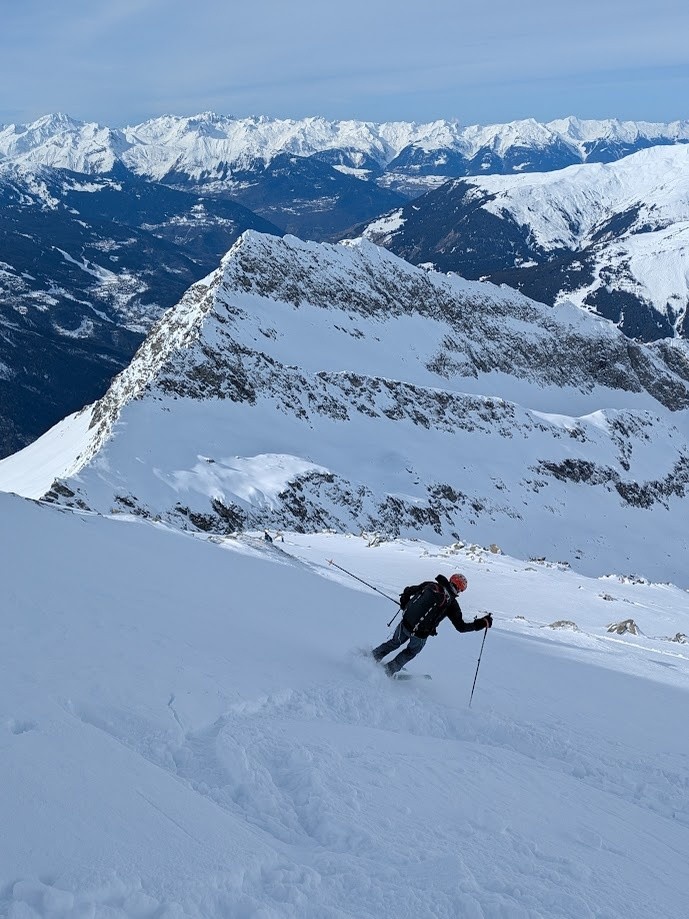 Traçage depuis le refuge. La Becquetta a été tracé par groupe qui a dormi au refuge. Poudre sur fond dur sur le haut, zippant à la montée, couteau apprécié (enfin pour celui qui en avait, marche pied pour les autres depuis 2900 environ). Neige exceptionnelle en dessous. Final accrobatique comme souvent.