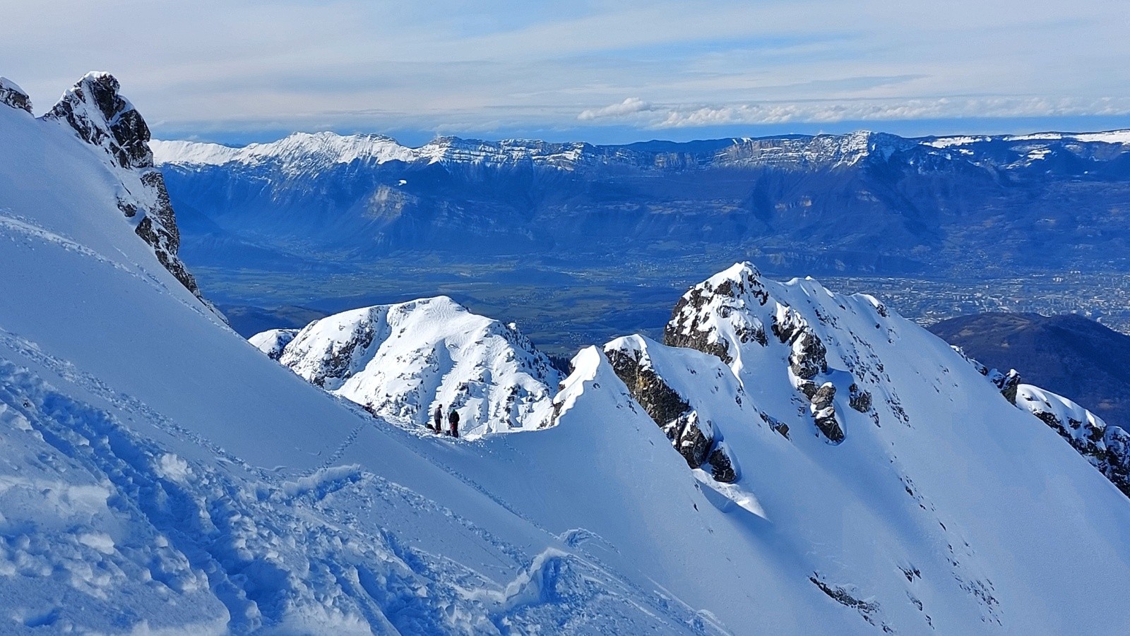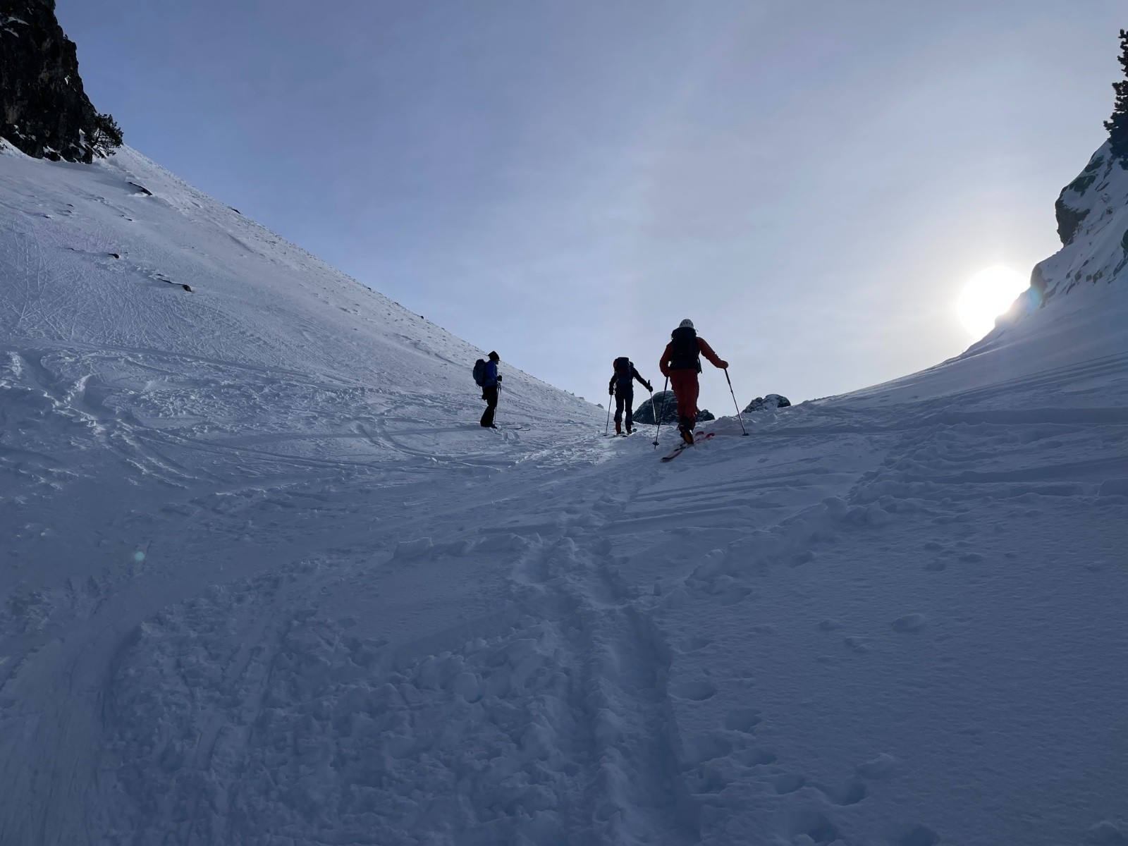 Ce matin deux groupes du CAF GO en partance du parking de Casserousse, 18 partants repartit en 2 groupes. Sur une idée de Dominique on va aller explorer le secteur N de Jasse Bralard que personne du groupe ne connait. Montée efficace vers la brèche Robert Nord où le groupe 1 partira vers le grand Eulier. On a repérer une option vers la crête qui semble intéressante plutôt que de descendre dans la face E classique visiblement bien tracée. Excellent choix la NE, pas une trace, la face rien que pour nous dans une poudreuse indécente telle le décrit Pocahontas. On aperçoit de loin le groupe 2 qui a contourné par les lacs robert pour rejoindre la montée vers le col de la petite Vaudaine. A priori on devait les rejoindre mais quelques soucis de conversions vont nous retarder. On est là pour se faire plaisir et progresser on prendra le temps de monter avec la pédagogie adaptée. Les nombreuses conversions avant le col de jasse Bralard sont une très bonne école de perfectionnement. La descente N s'avère excellente dans une poudreuse 4 à 5 étoiles. Le groupe 2 nous ayant précédé au départ de la N de Jasse Bralard (pour ne pas dire qu'il nous on piqué la trace), on choisira la partie plus à droite magique à descendre sans trace. La banane est sur tous les visages, on aura pris la bonne option. On rejoindra ensuite la trace de nos prédécesseurs emmenés par Serge jusqu'au niveau du GR . Eux aussi se seront bien fait plaisir avec ces très bonnes conditions.