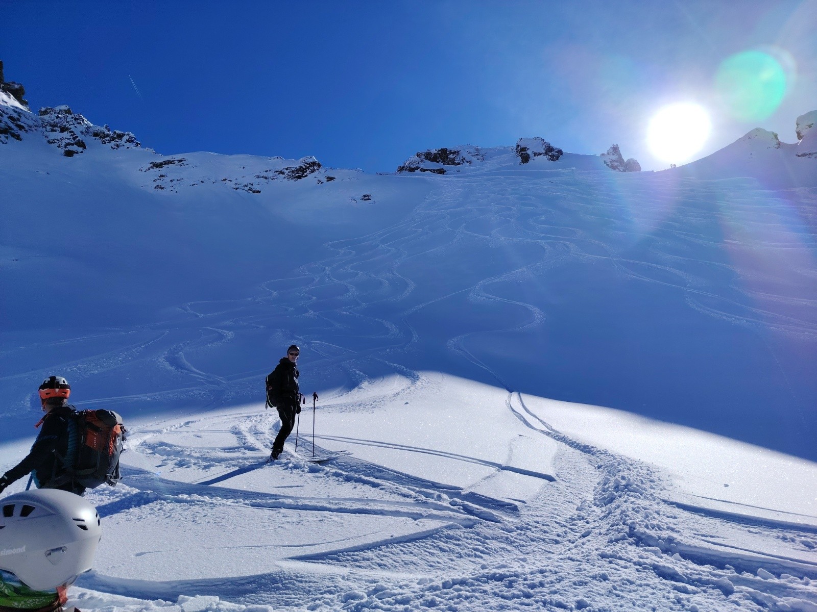 Descente du grand Eulier face E, poudreuse très agréable a skier sur l'intégralité de la face