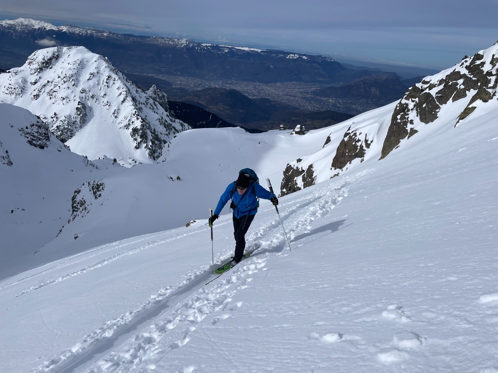 Montée sur Jasse Bralard sur une neige tassée, pas eu besoin des couteaux, bon tracé, mais pas mal de conversions avant le sommet