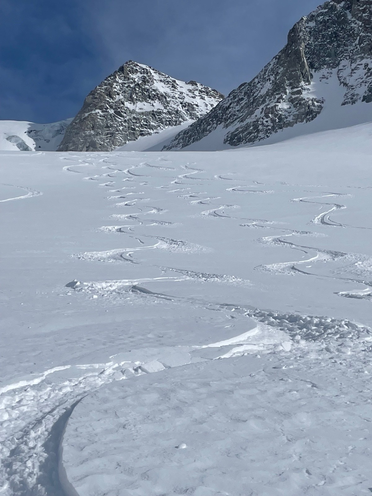 Départ depuis le bas, Pierre à ric avant l ouverture, on est monté coté rive droite, descente rive gauche, pas de difficulté mais c’est long 😂aucun vent en haut du col, juste 3 personnes derrières nous sinon personne, descente rive droite. La descente du col était dans une super neige, le glacier est sec et il faut quelques fois remonter un peu