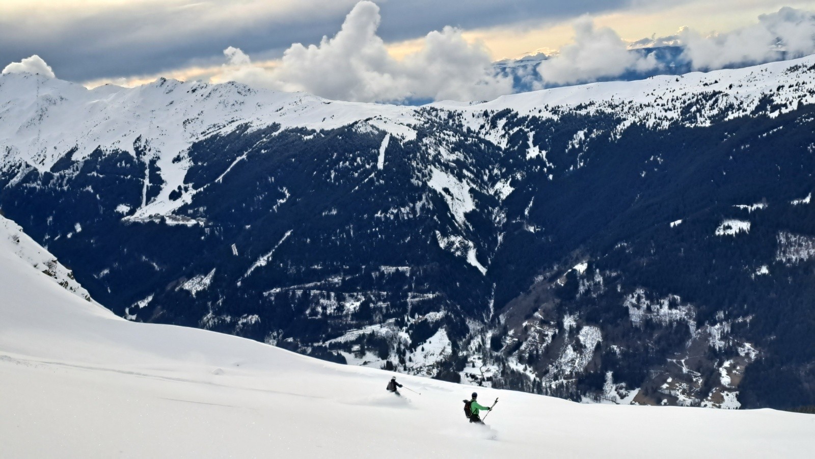 Conditions pour le ski : Neige fraîche à partir de 1600/1700 m, à 2000 m une 15 en de cm de fraîche sans vent sur une petite croûte puis 30 cm de poudre tassée. Neige qui s'alourdit au soleil tandis qu'au nord elle reste bien froide avec effet de jour blanc. Sous le refuge neige dame revenu