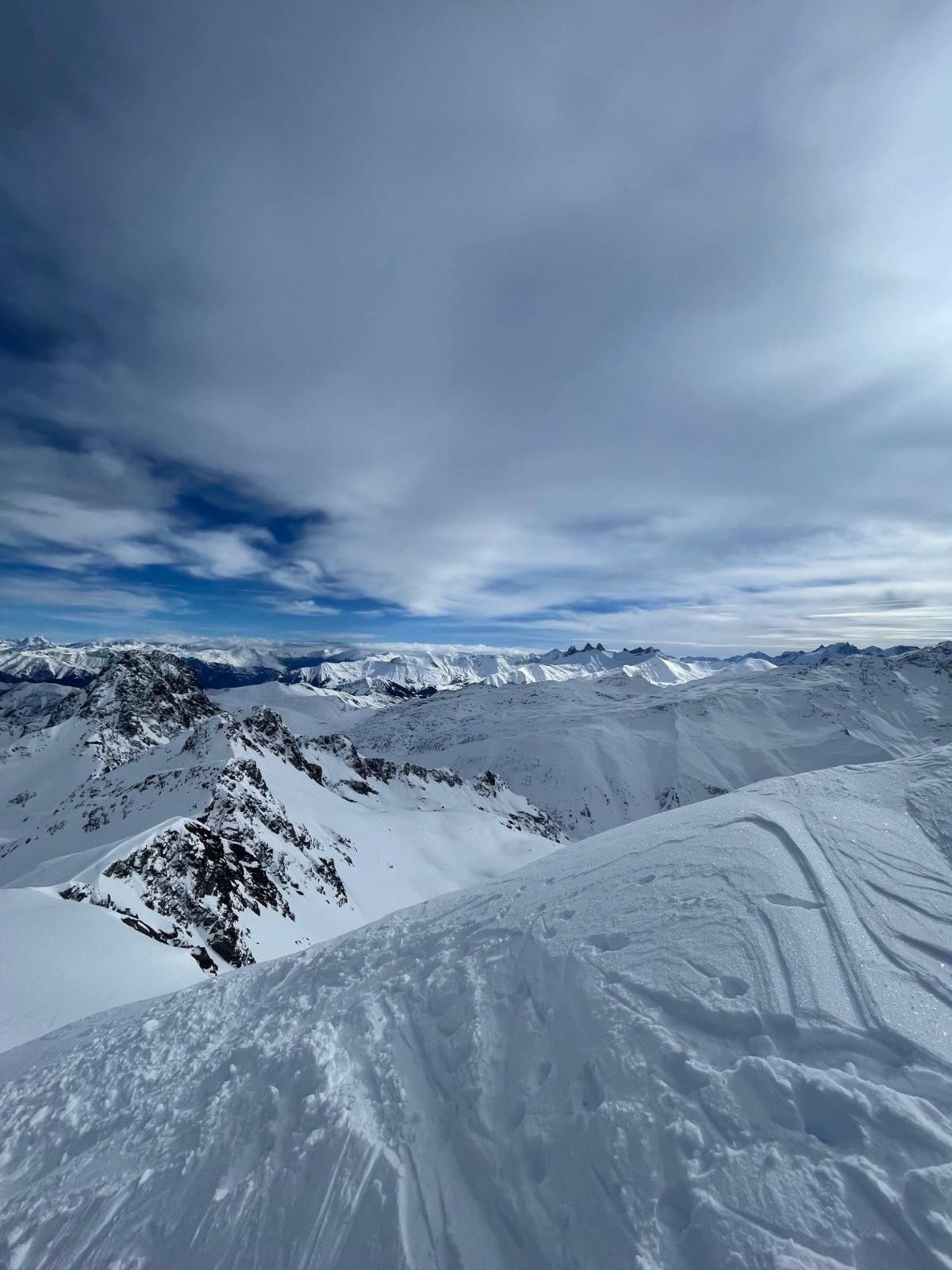 Conditions pour le ski : du Rocher Blanc au refuge : de la poudre, de la poudre et ... de la poudre !! Ski exceptionnel, même si la neige commençait (très légèrement) à devenir lourde à la redescente vers 13h00. Manque de luminosité quand on redescend dans la combe, ce qui a occasionné quelques surprises (oups la bosse). Après le refuge, ça se gâte : neige ultra croutée (voire solidifiée / verglassée) et retour dans le ski cross de la forêt. Les semelles ont apprécié ! D'où cette appréciation uniquement "bonne" de la skiabilité, en guise de moyenne.