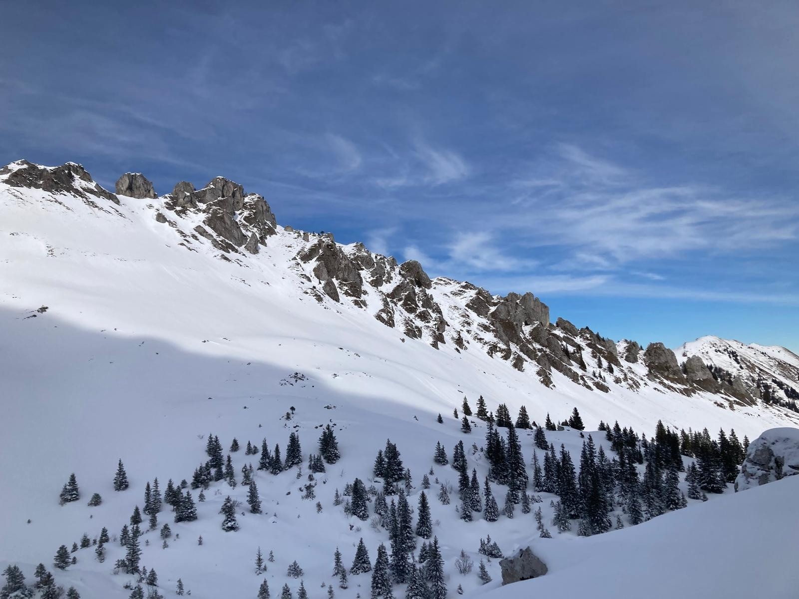 Conditions nivo et activité avalancheuse : des purges déja descendu dans le vallon de l'haut de Morge, des boulettes aussi avant d'arriver à la porte des Oches. Espacement avant d'arriver au col de Tréperpuis.Skiabilité : 🙂 Bonne