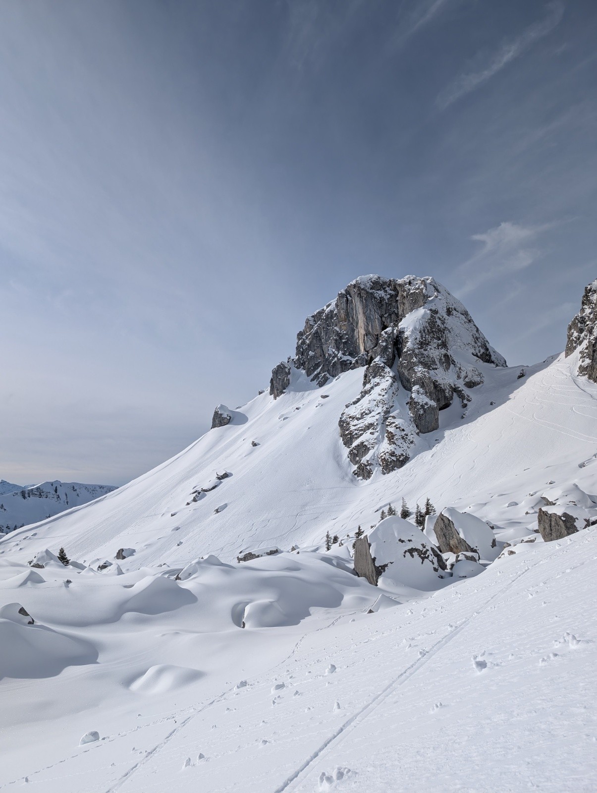 C'était magnifique, une course sauvage sous le regard des chamois et bouquetins, 4 autres randonneurs avec nous sur le tour. Dans la première descente, il n'y avait que nos traces, dans une neige qui alternait entre poudre et moquette. Whaou, rien à jeter.