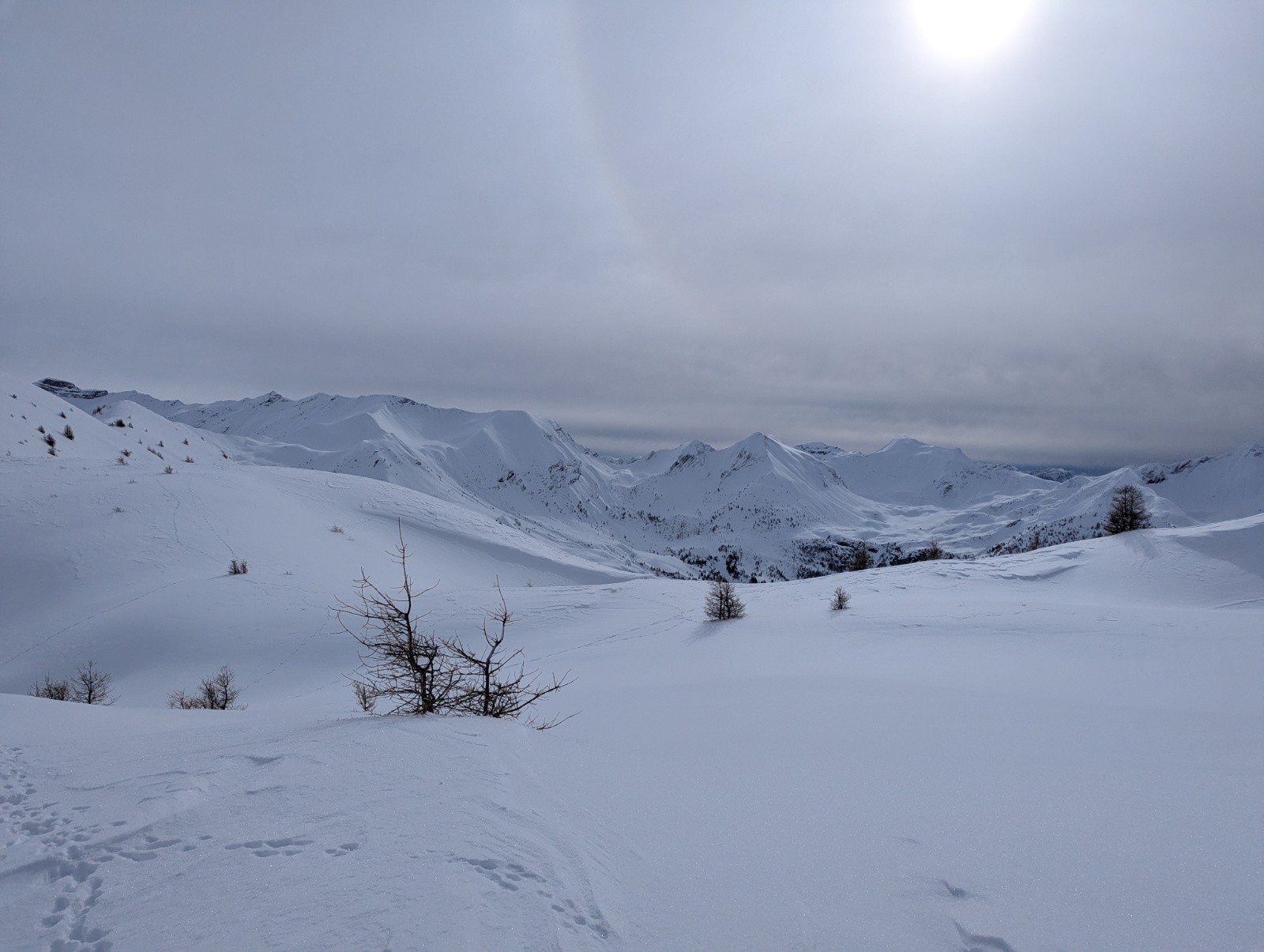 Itinéraire suivi : Montée de Clot-Davin jusqu'à la cabane de Tante Yvonne, puis montée par les pentes estimées les moins raides (<35°) direction col du seigneur. La montée par un couloir hors de la foret puis zig-zag pour éviter les pentes >35°. Arrivée au col du seigneur puis montée avec ski sur le dos jusqu'à 2400, on s'arrête avant la Petite Autane mais rien n'empechait de continuer.