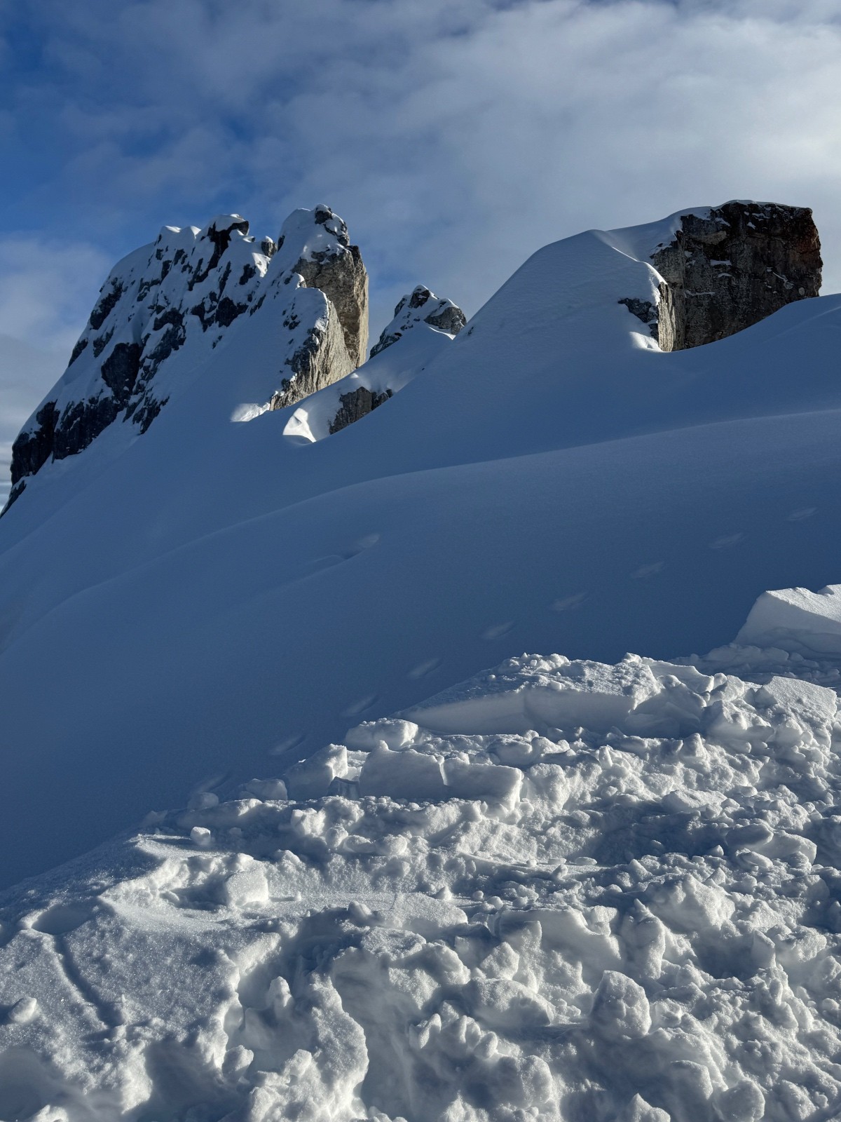 Conditions pour le ski : de tout ! Neige transformée, croutée et un peu de vielle poudre. A la montée il vaut mieux sortir de la trace qui est lustrée. La route passe très bien.