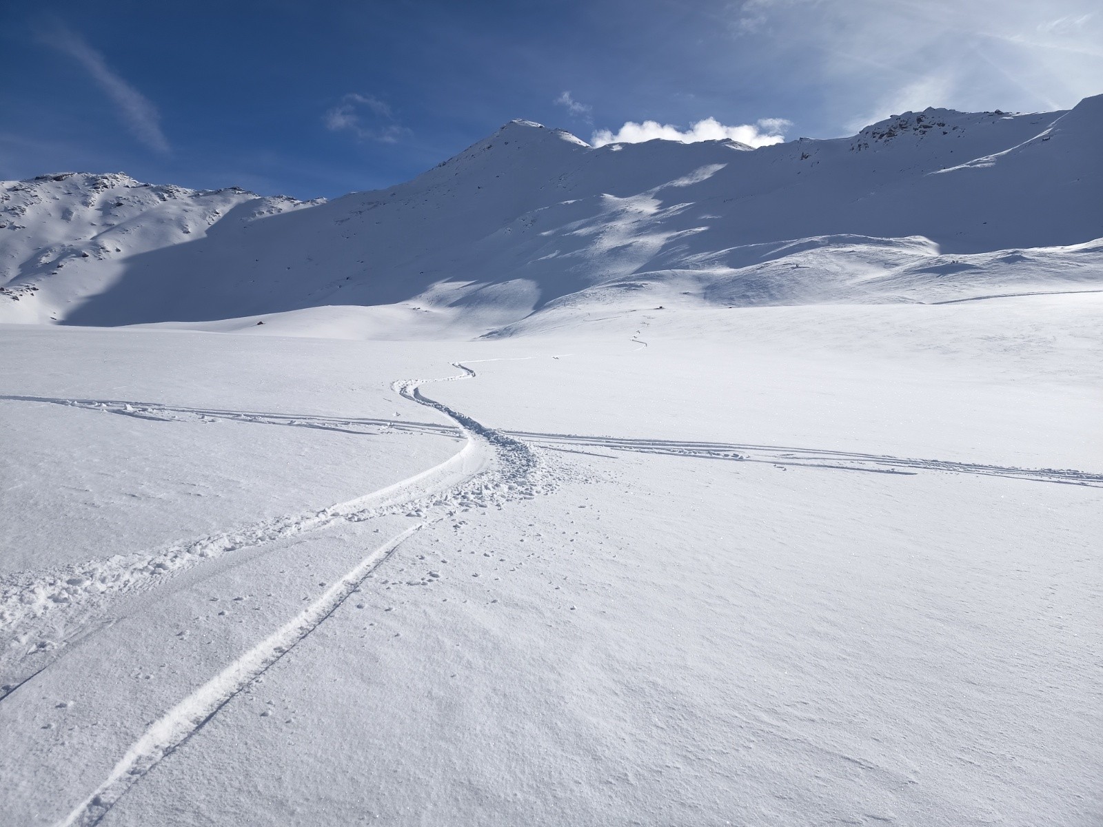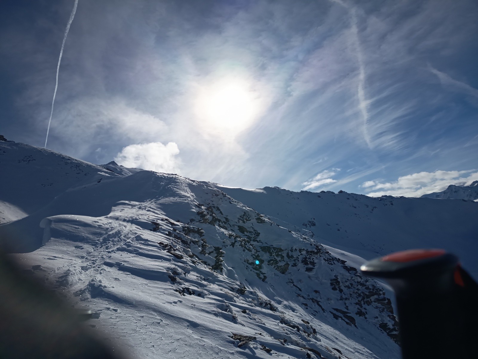 Conditions pour le ski :la face a pris le vent, neige cartonnée. Parfaite dans la forêt
