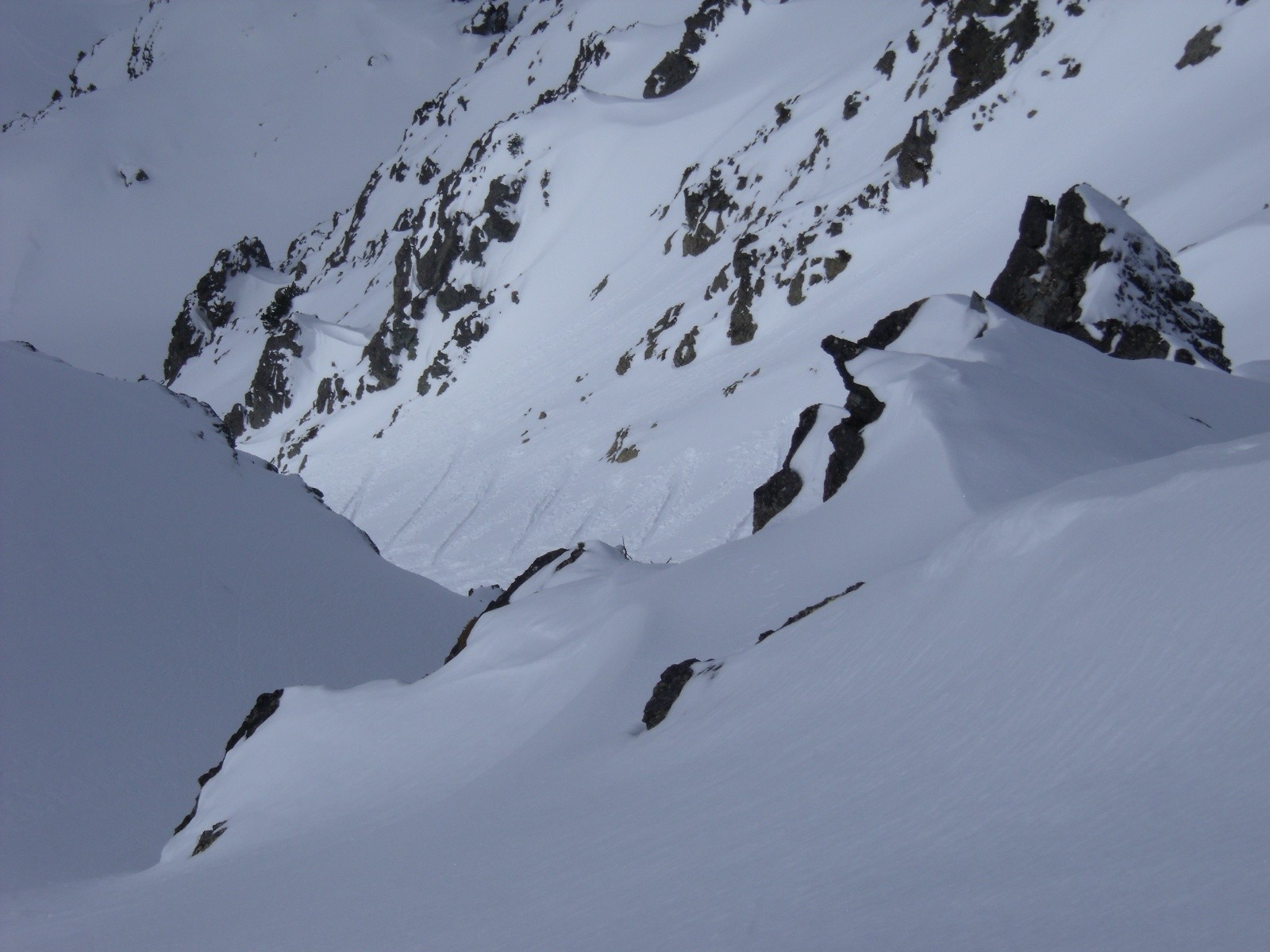 Conditions nivo et activité avalancheuse : rien vu ce jour (juste quelques "sluffs" en face Nord de l'Eulier), mais une "ancienne" coulée consistante dans le bas de la face Nord de l'Eulier (zone "à main droite" en ayant quitté la face-couloir à mi-hauteur)