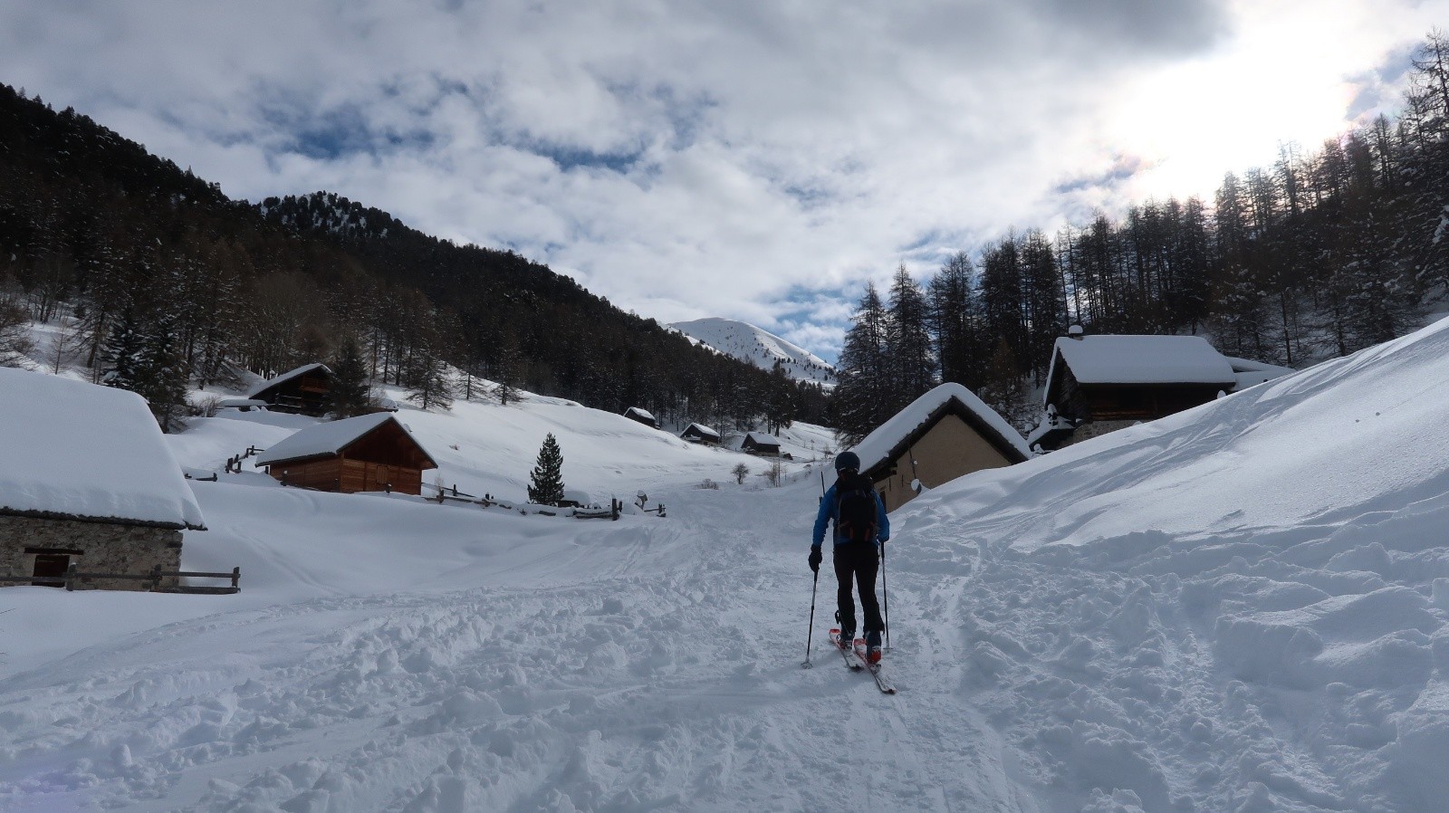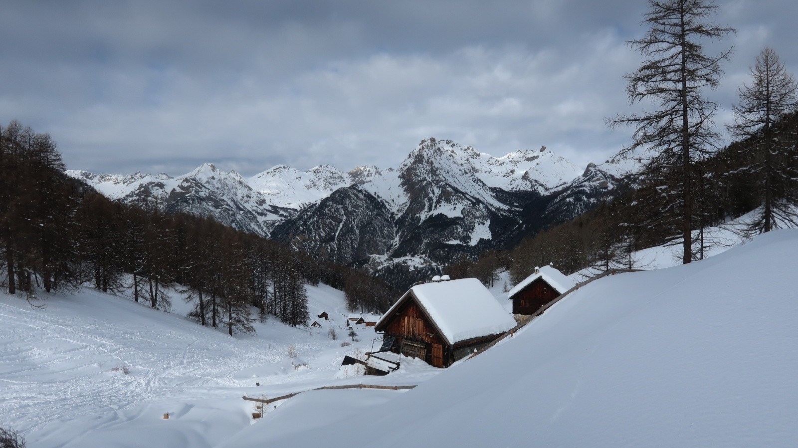 Conditions nivo et activité avalancheuse : Enneigement léger en versant sud au dessus du village. Heureusement le sentier de montée a été damé par les piétons. Enneigement correct pour la saison. Peu de risque sur ces pentes débonnaires.