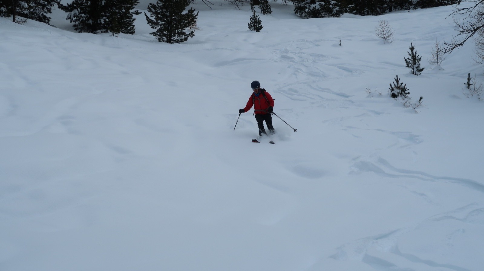 Conditions pour le ski : Très bon en versant nord ouest du Col, assez bon légèrement croûté sur le haut en versant sud et médiocre plus bas sur le sentier trafolé.