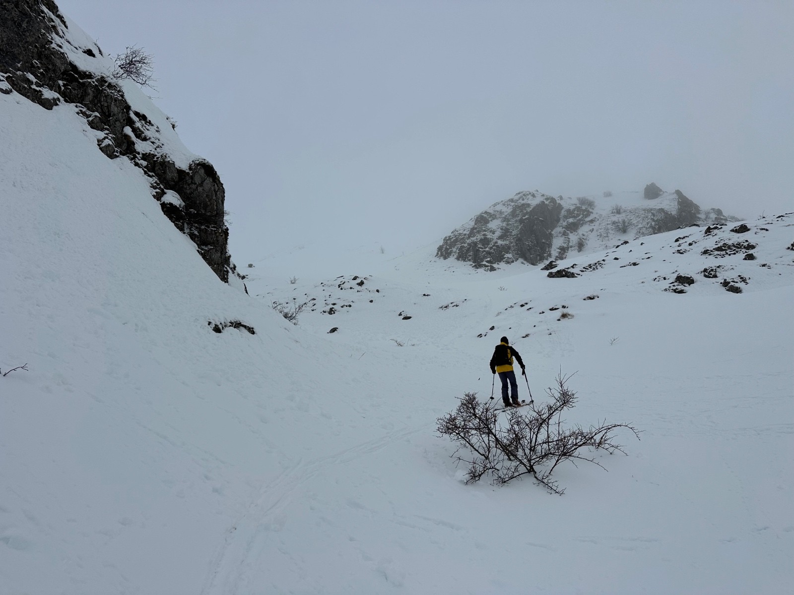 Conditions nivo et activité avalancheuse : 1 cm de fraiche au parking, jusqu’à 10cm à partir de 1500m. Sur une neige dure. Vraiment agréable à skier.