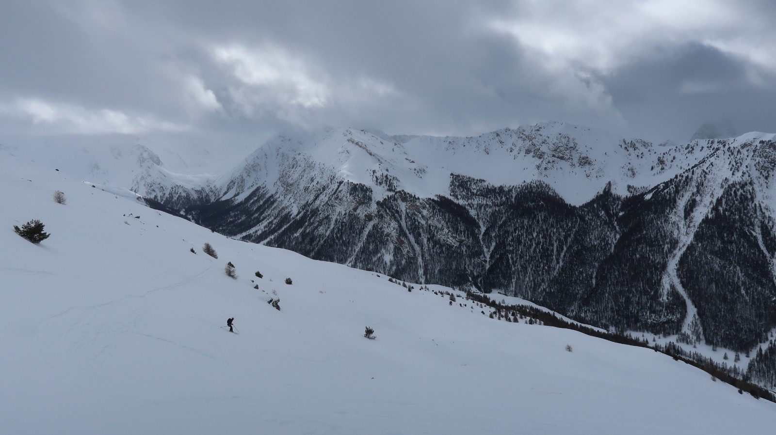 Conditions pour le ski : Conditions correctes en cherchant les contrepentes ouest pour éviter la croûtée. Enneigement de haut en bas. La route du Cristillan est damée pour le skating.