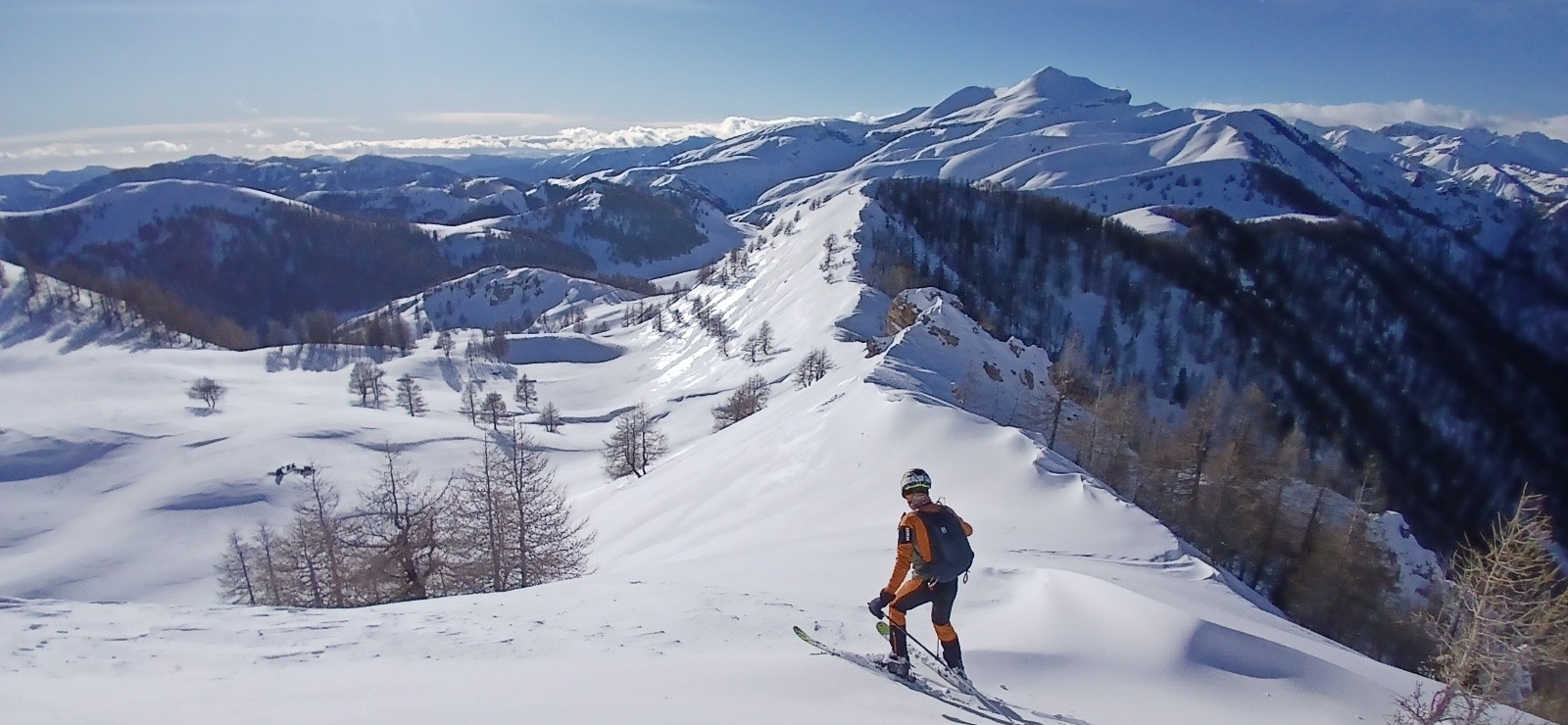 Sinon pour l'histoire, vu les conditions de très fort vent annoncé on opte pour un sommet court sur pattes habillé d'une agréable forêt au tombant fort intéressant pour notre pratique de la godille sportive !