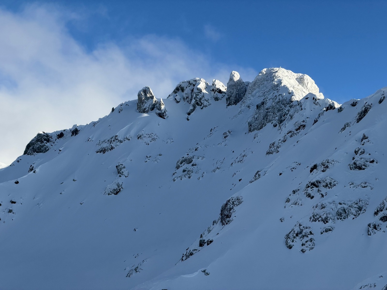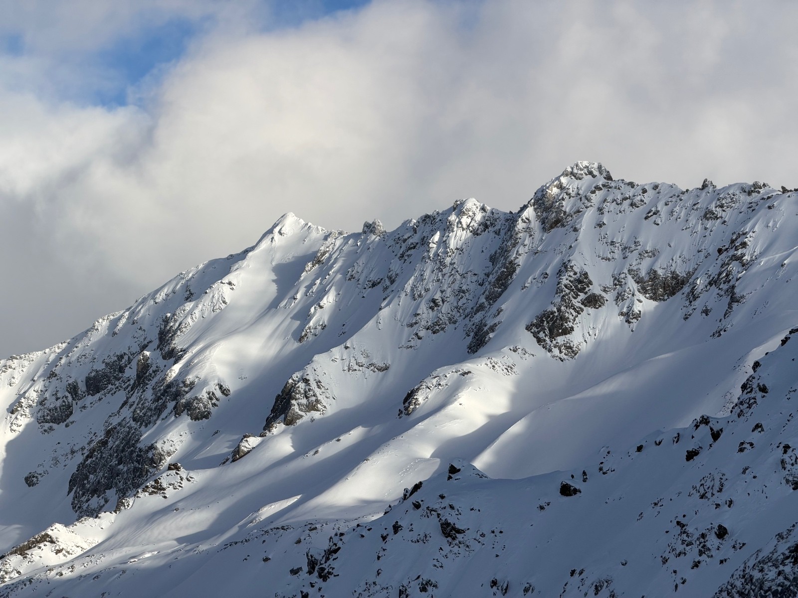Au-dessus de 1800, couche de 15/20cm bien densifiée limite carton mais très agréable à skier. Le haut de Pouta a été pelé, c’est le côté qui a pris le vent ici. Du coup des accumulations probables ailleurs (notamment dans les vallons du Pra).