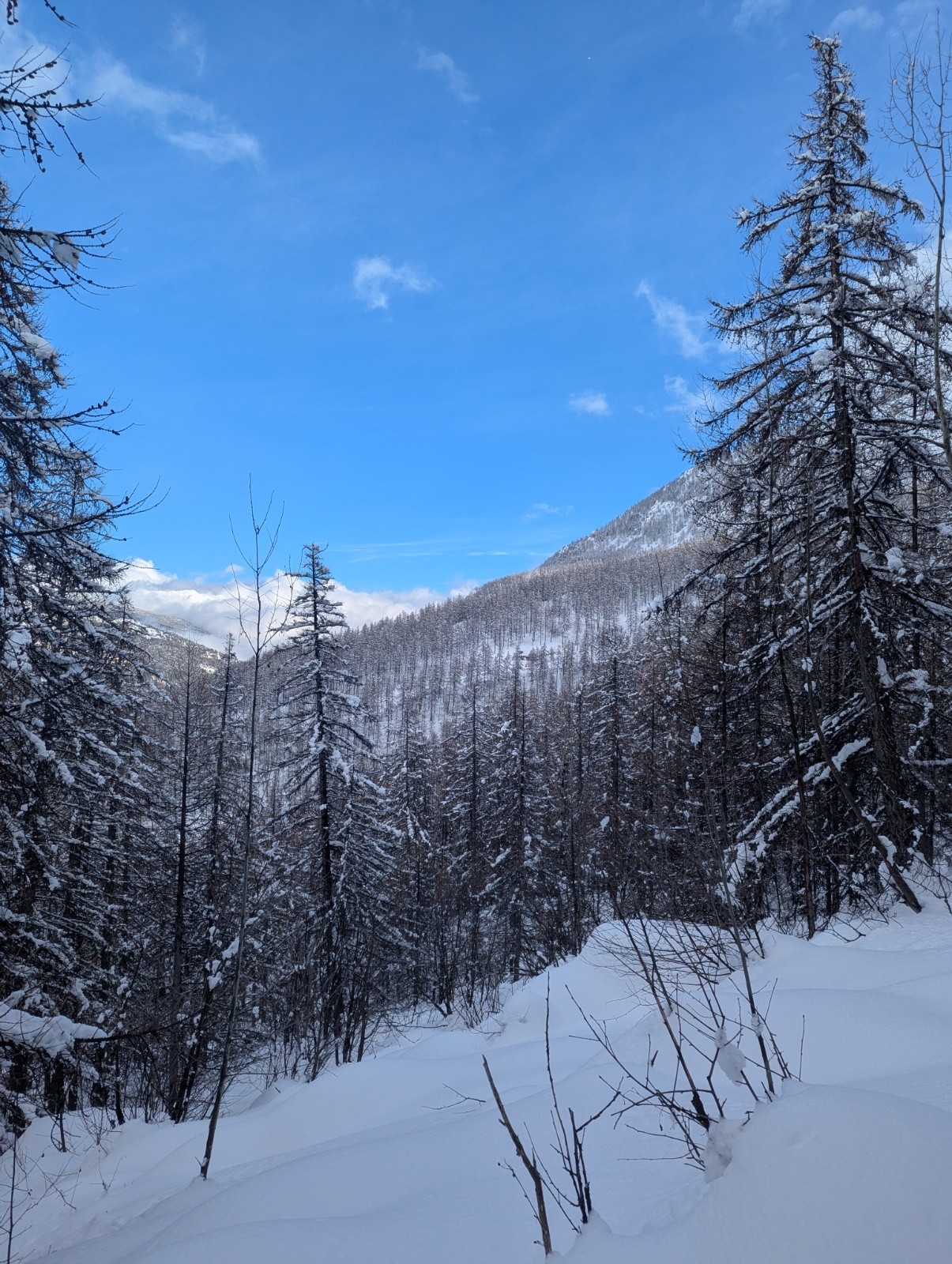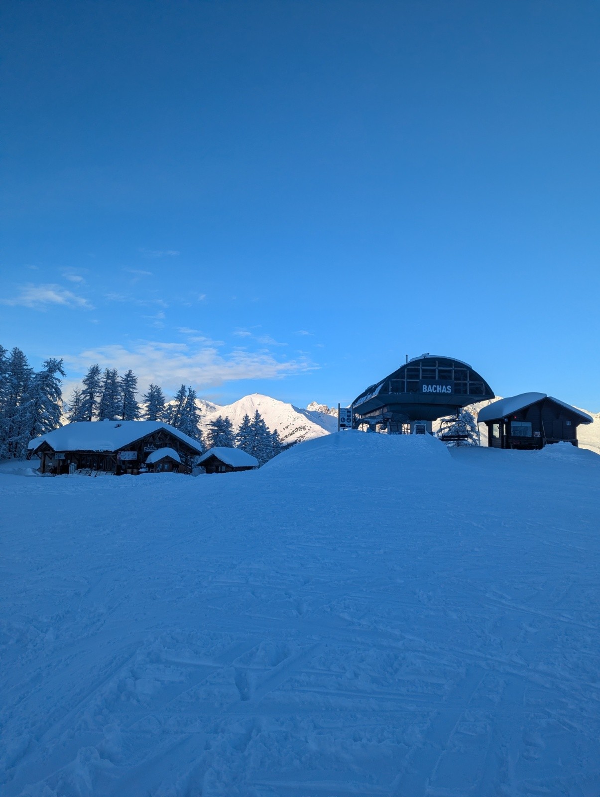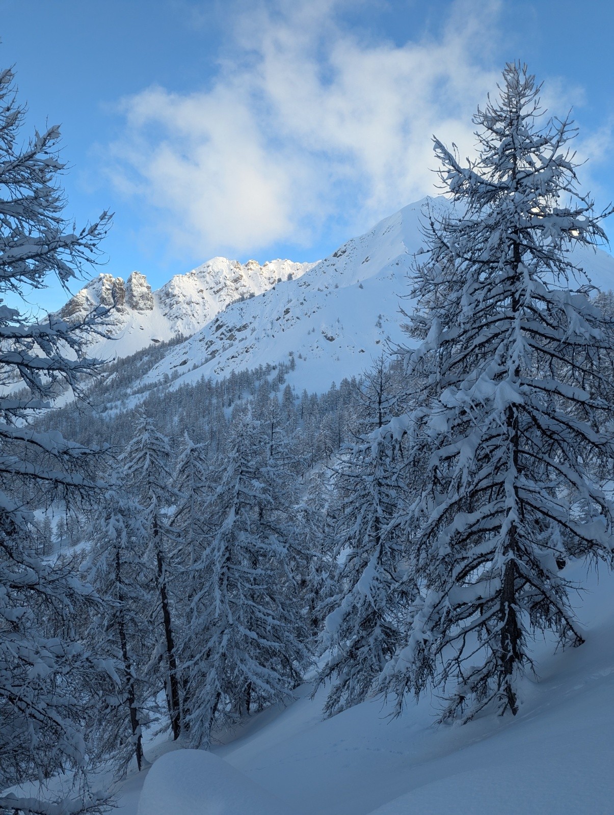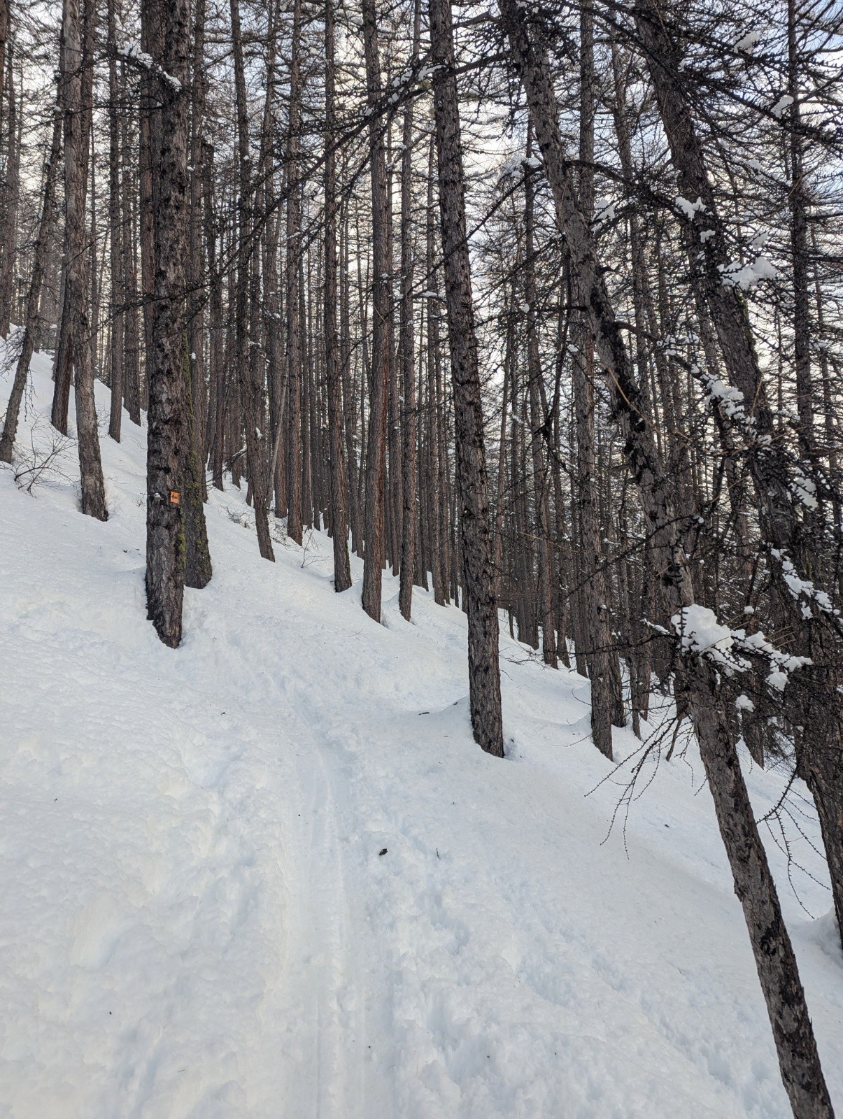 Conditions pour le ski : la trace est nickel jusqu' au Bachas, neige tassée. En descente, on prend les pistes : la neige est trafolée et dure, ça fume les mollets de descendre avec nos skis trop légers pour ce terrain !