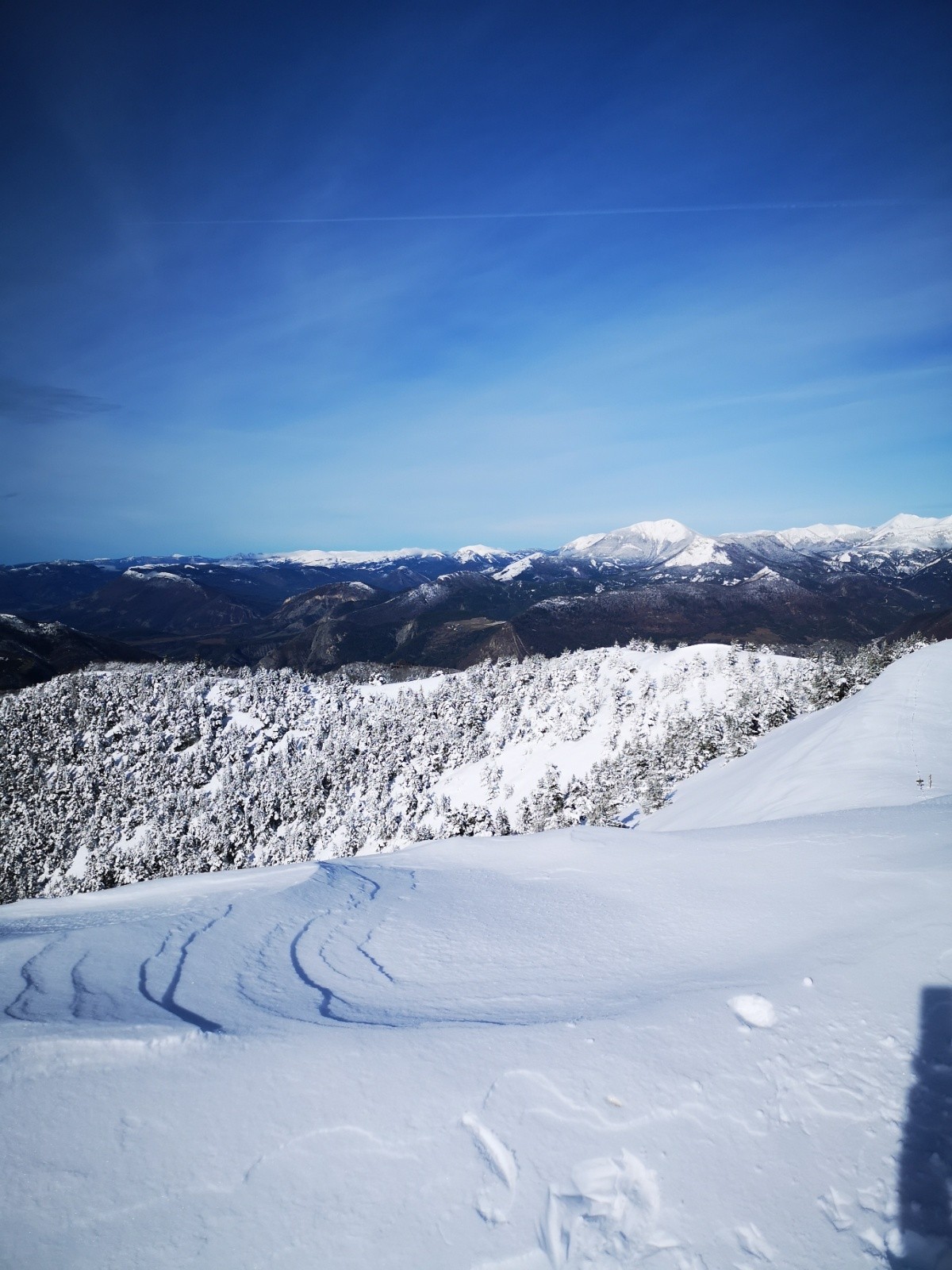 Conditions pour le ski : petite neige fraîche 3 à 5cms sur neige bien humide mais couche conséquente entre 50 et 1m selon alti et orientation. Neige poudreuse jusqu'à 1600 en dessous s'humidifie très vite et lourde