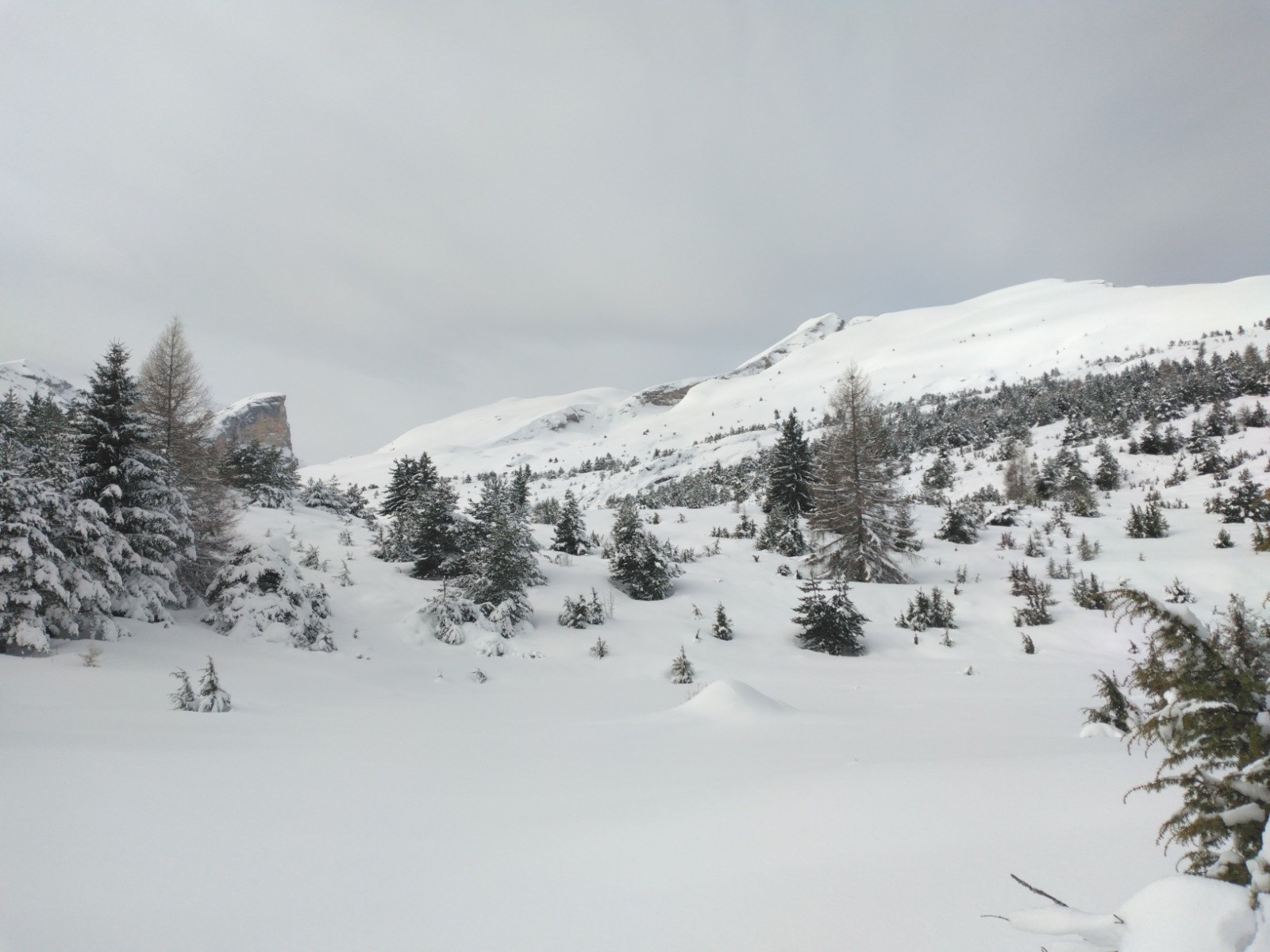 Une nouvelle (bonne) pioche pour une sortie où on limite les risques.. (à défaut de pente, se méfier quand même des chorums..). La partie supérieure de la forêt est bien dense avec beaucoup de relief, pas si simple de trouver un itinéraire direct quand on ne connaît pas..