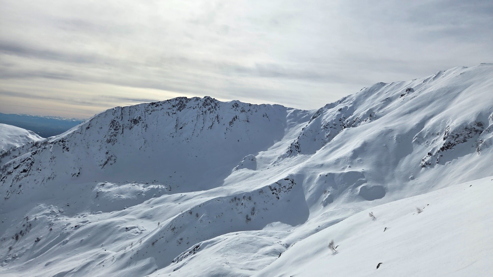 Conditions pour le ski : Decaillee ok sous 1700m, Decaillee lourd et enfoncant sous croûte légère au dessus.