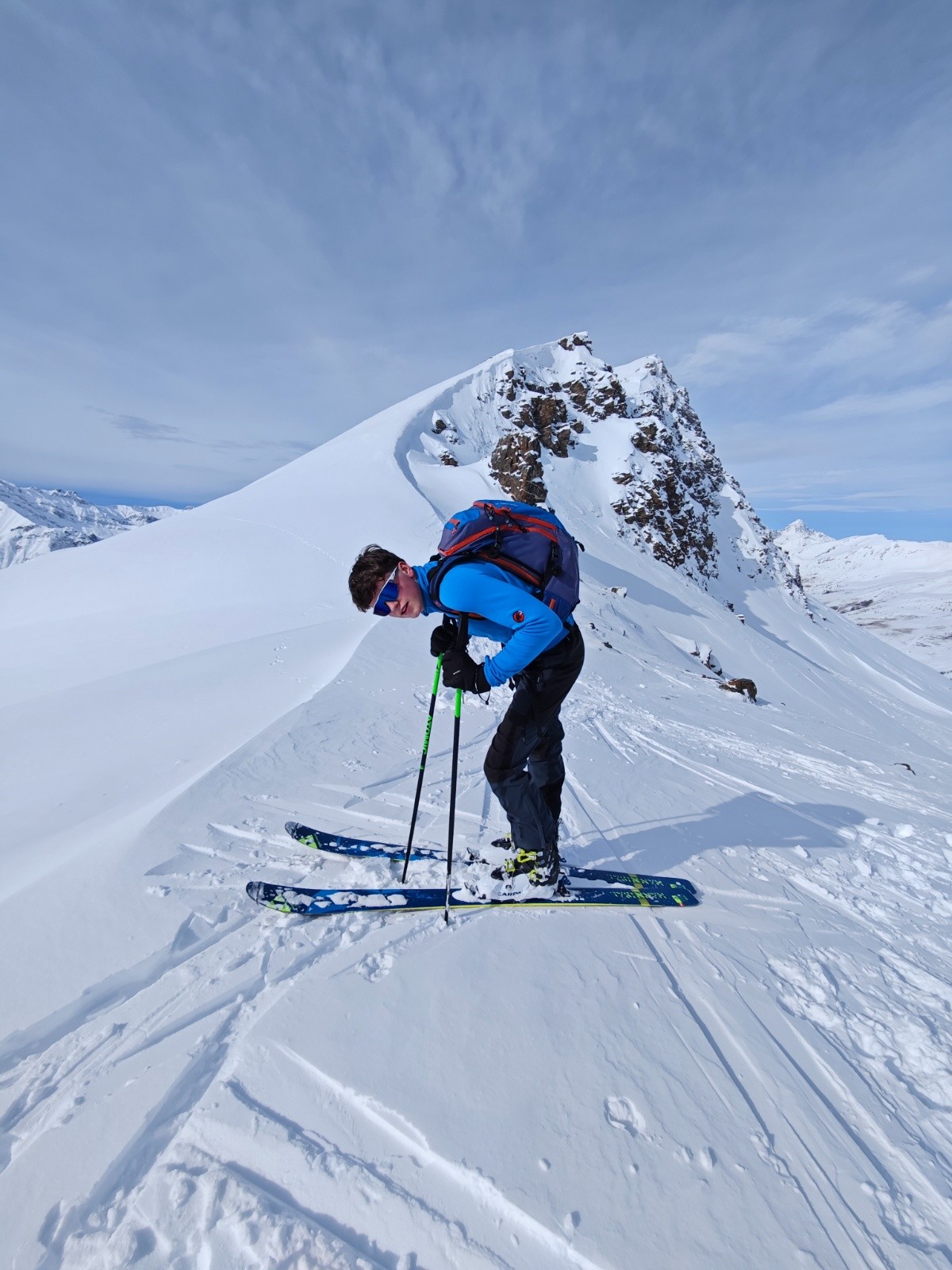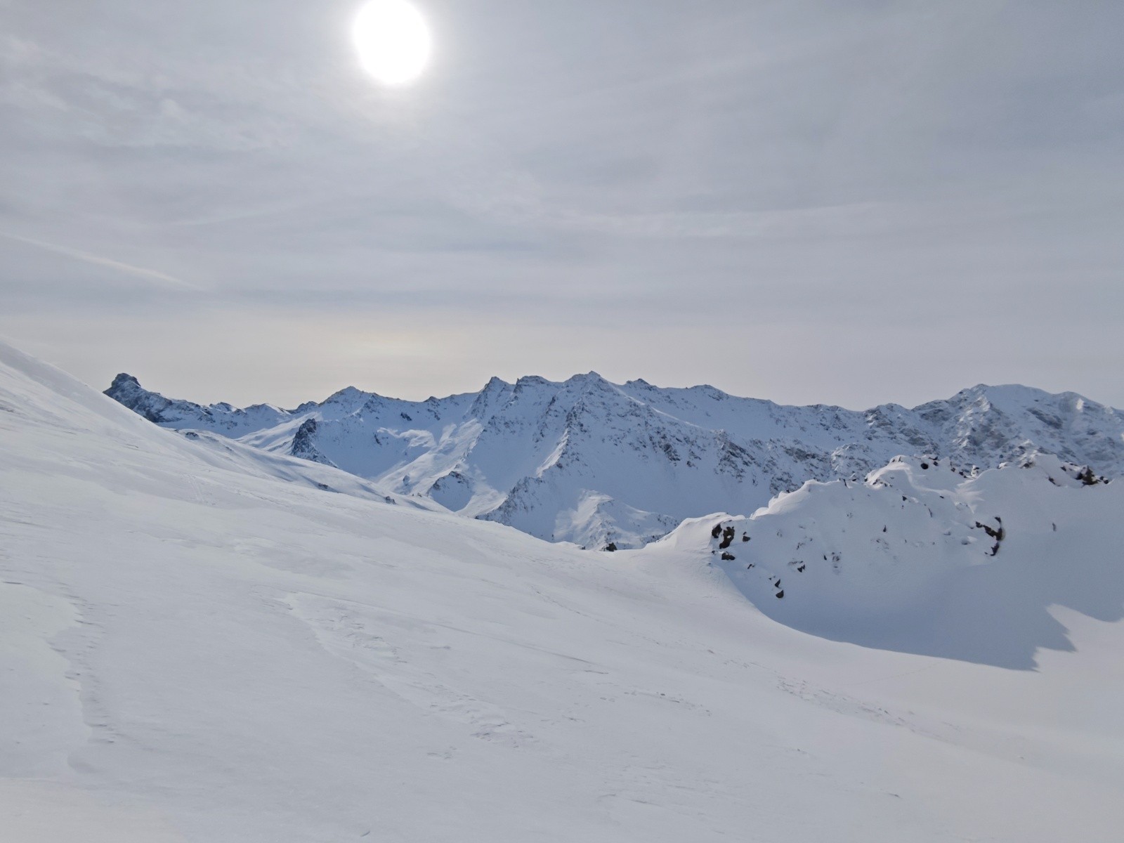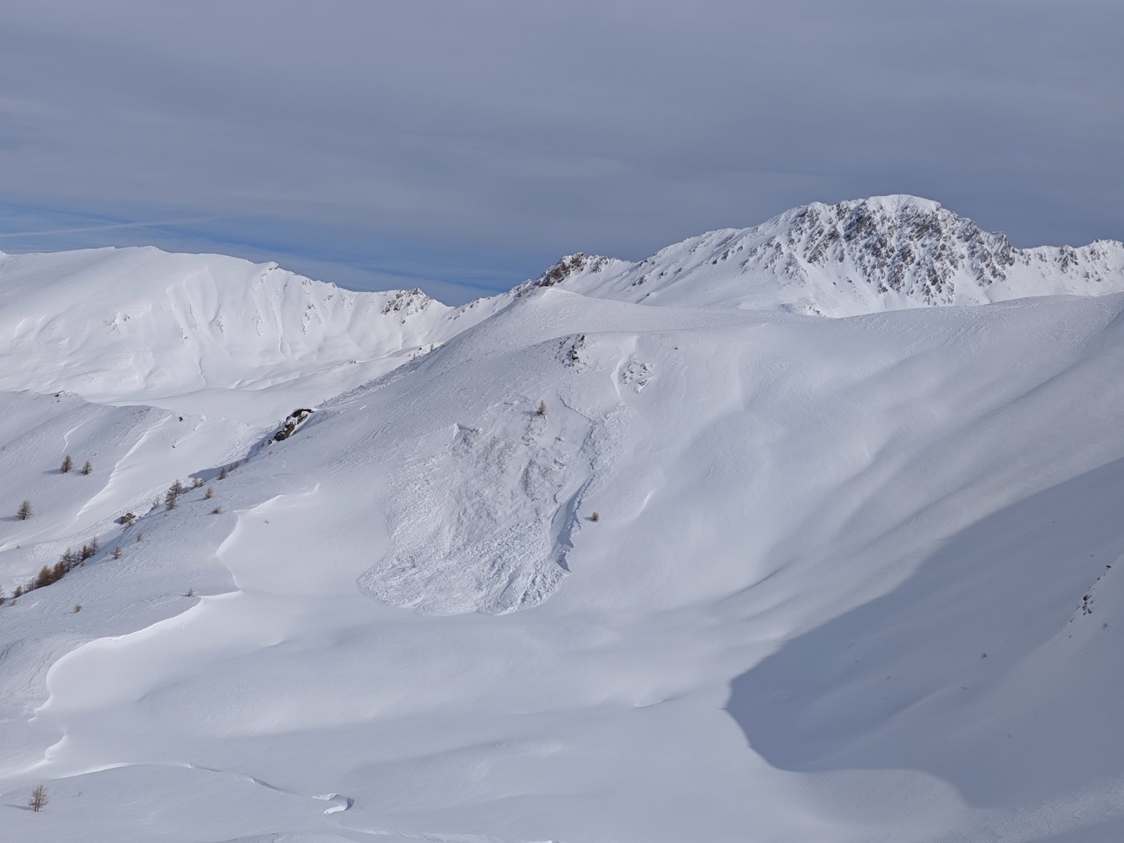Conditions pour le ski : Excellentes, neige froide et poudreuse, un peu ventée dans le haut. Plus haut, l'accès au pic Traversier est très venté.