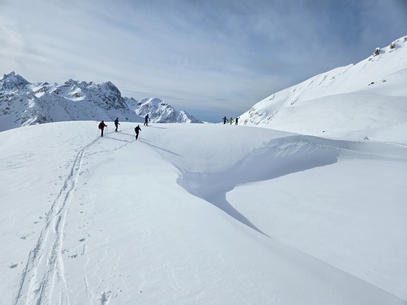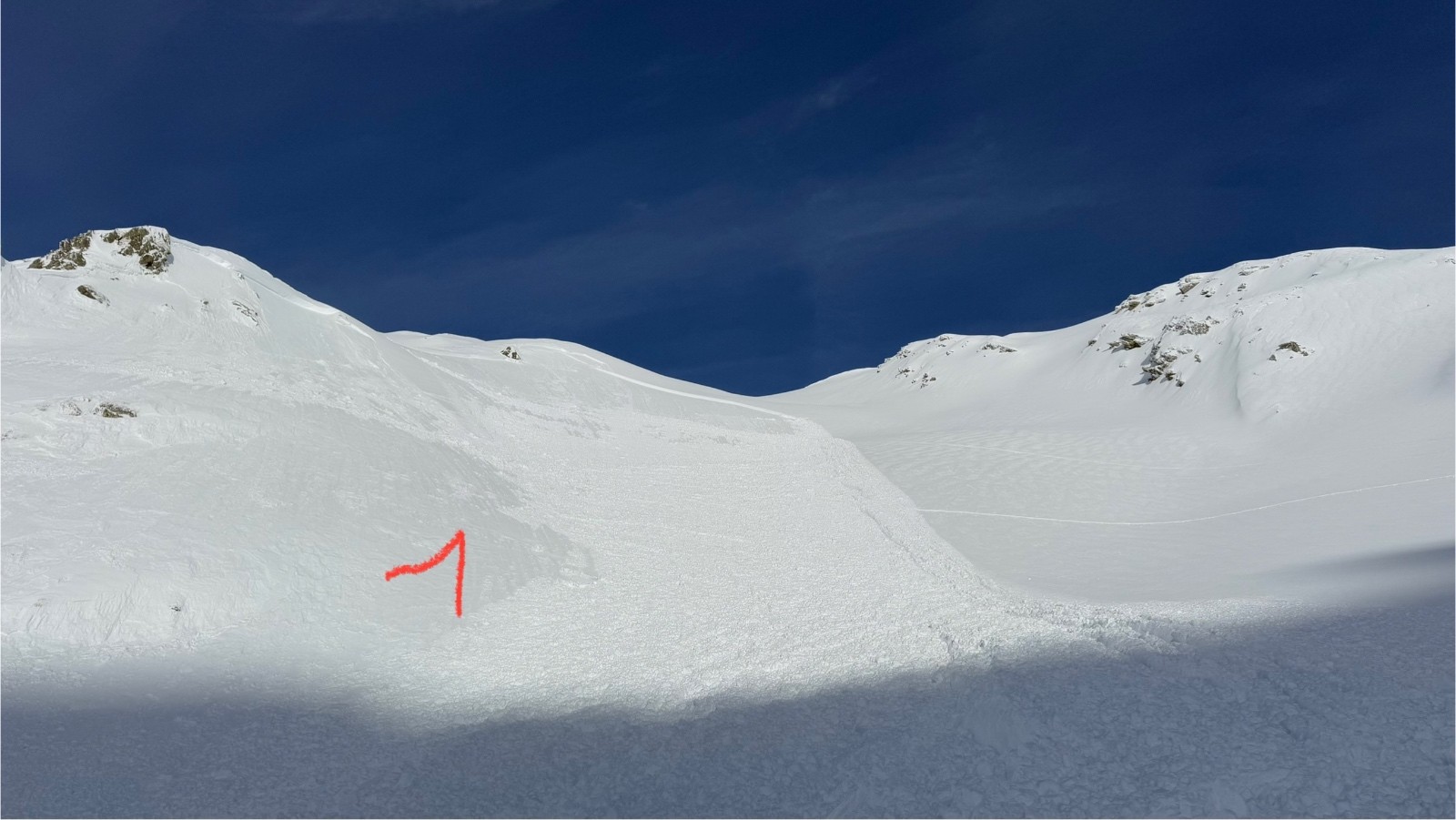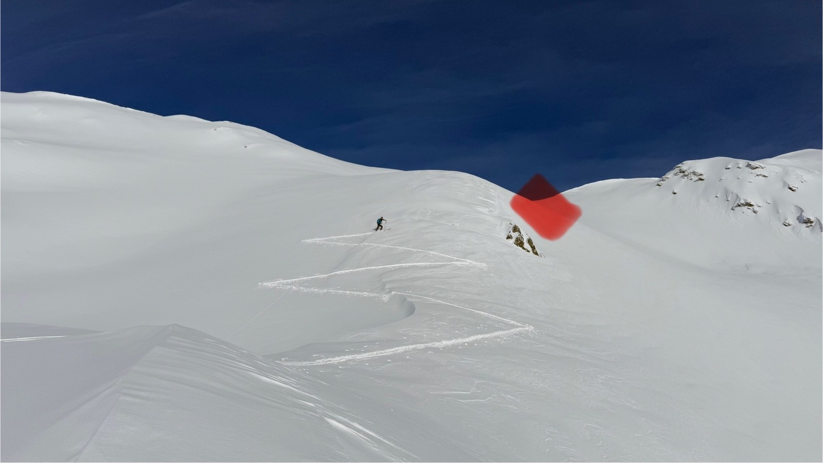 Conditions nivo et activité avalancheuse : peu de signes du vent, vallon assez propre a part 2 ou 3 plaques parties pendant la dernière chute sur les raides, proche des rochers.