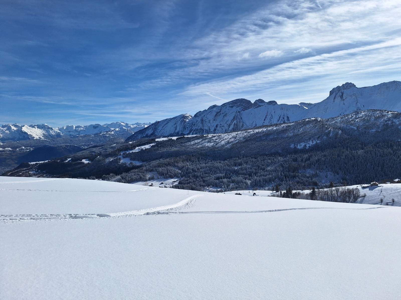 Champs au-dessus de Solaison: belle neige un peu densifiée par le vent