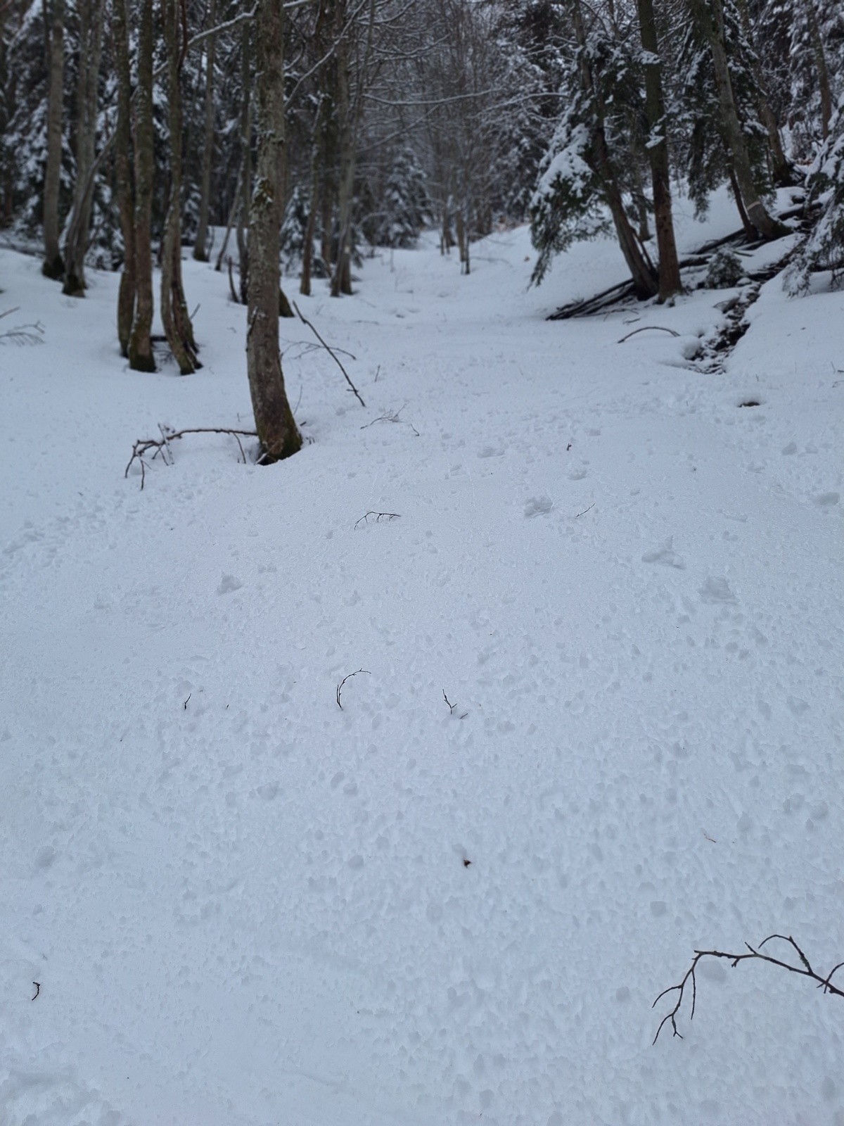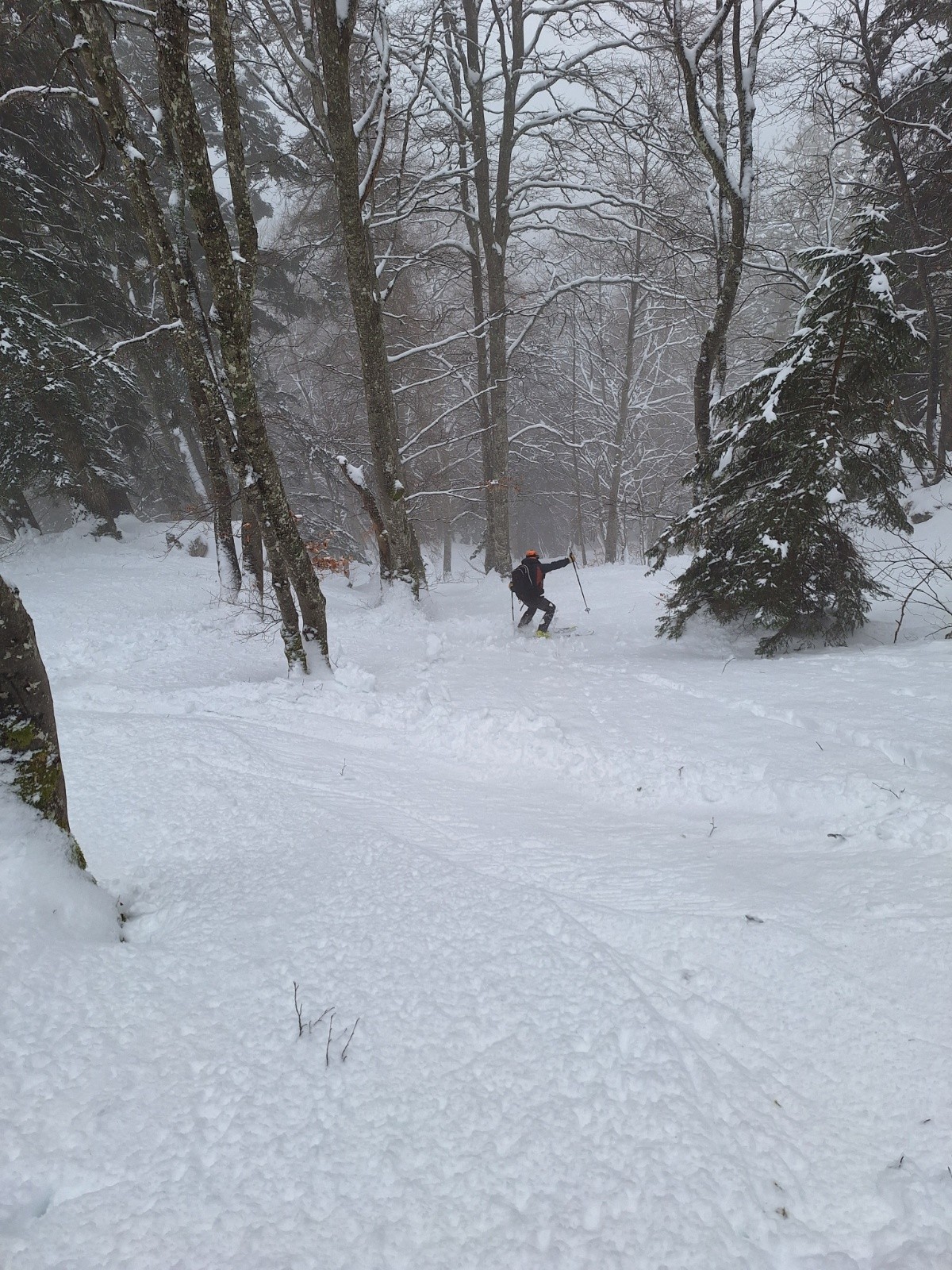 Le haut est raide mais la neige au top, ensuite une piste m'amène dans le bois de Fayard bien aéré comme il se doit : c'est trop bon !
