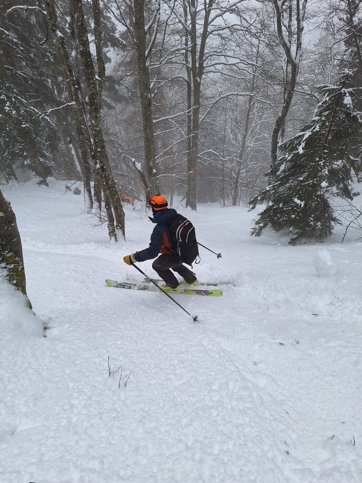 Conditions pour le ski : neige récente humide sans plus, compacte, tres facile à skier. Mais la pluie remonte.