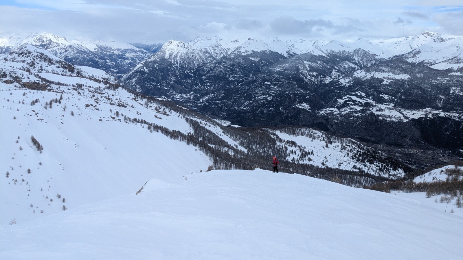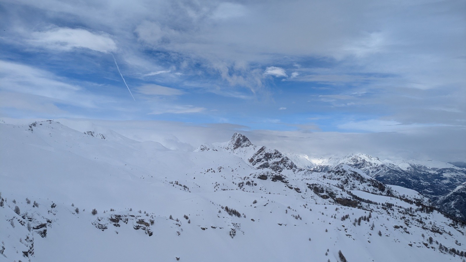 Conditions pour le ski : 40 cm au pk, enfoncement du bâton de 80cm à 2200m. De 1400 à1600, neige très lourde, collante. De 1600 à 1800, humide ,dense mais skiant en sortant des traces. De 1800 jusqu'au sommet de la forêt poudre dense agréable. Au dessus c'est très travaillé par le vent.