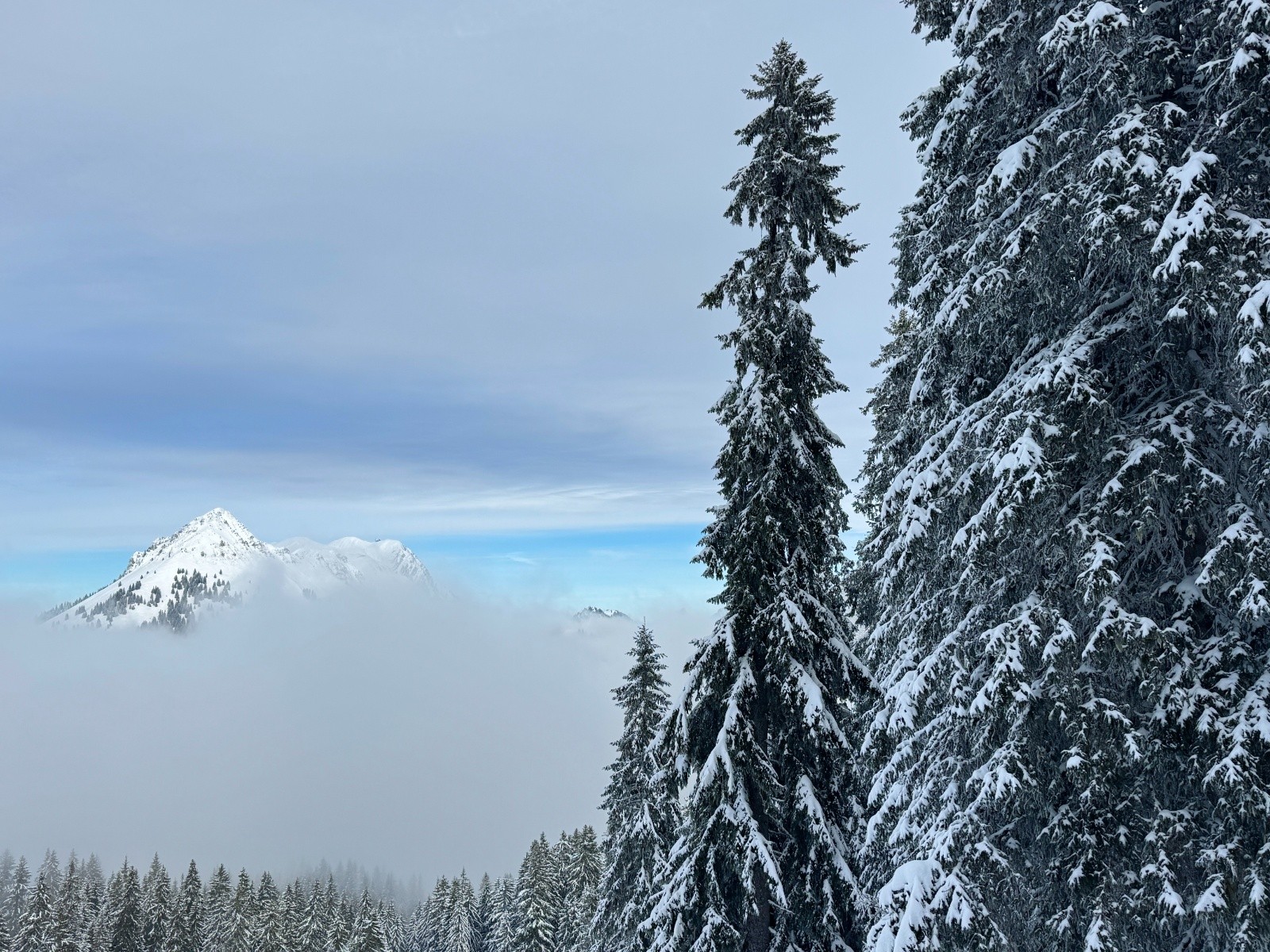 Sortie de dernière minute, l'opportunisme paie : les nuages se déchirent et offrent une belle ambiance hivernale.