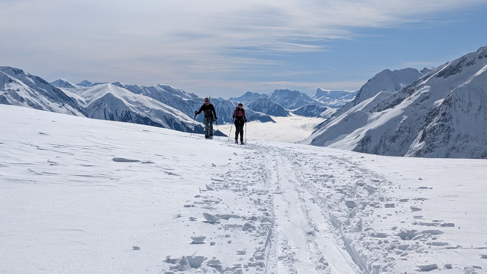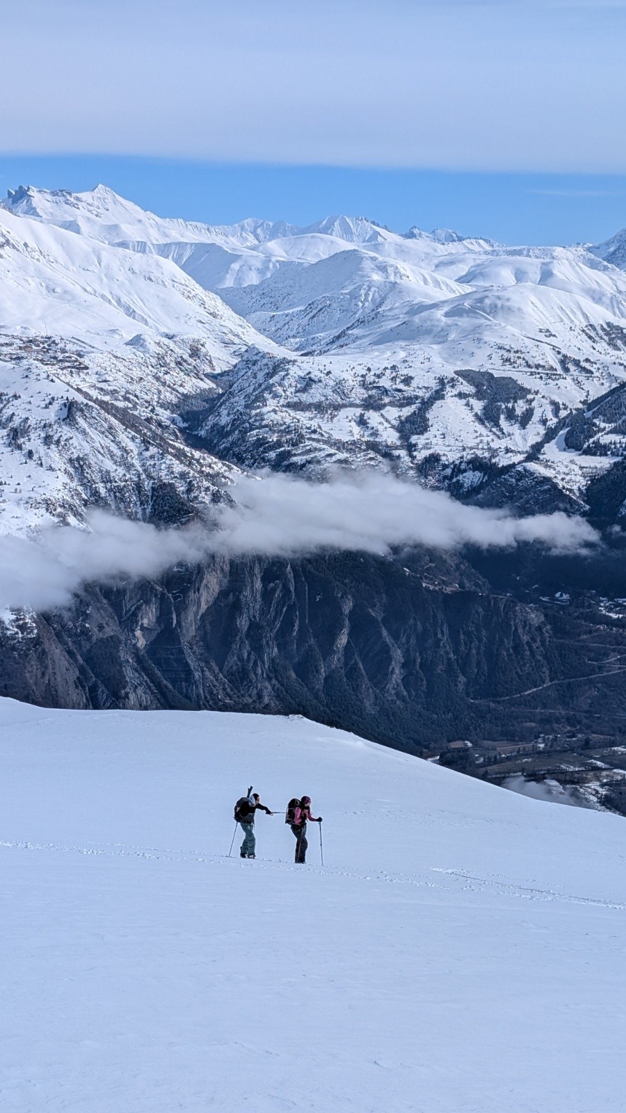 Itinéraire suivi : itinéraire classique, en prenant bien complètement à gauche en montant pour suivre la croupe et ne pas couper les pentes. Deux traces ont été posées au dessus, une par le refuge du taillefer et une autre plus directe que nous avons suivie. Merci aux traceurs, Bonne boulot ;)