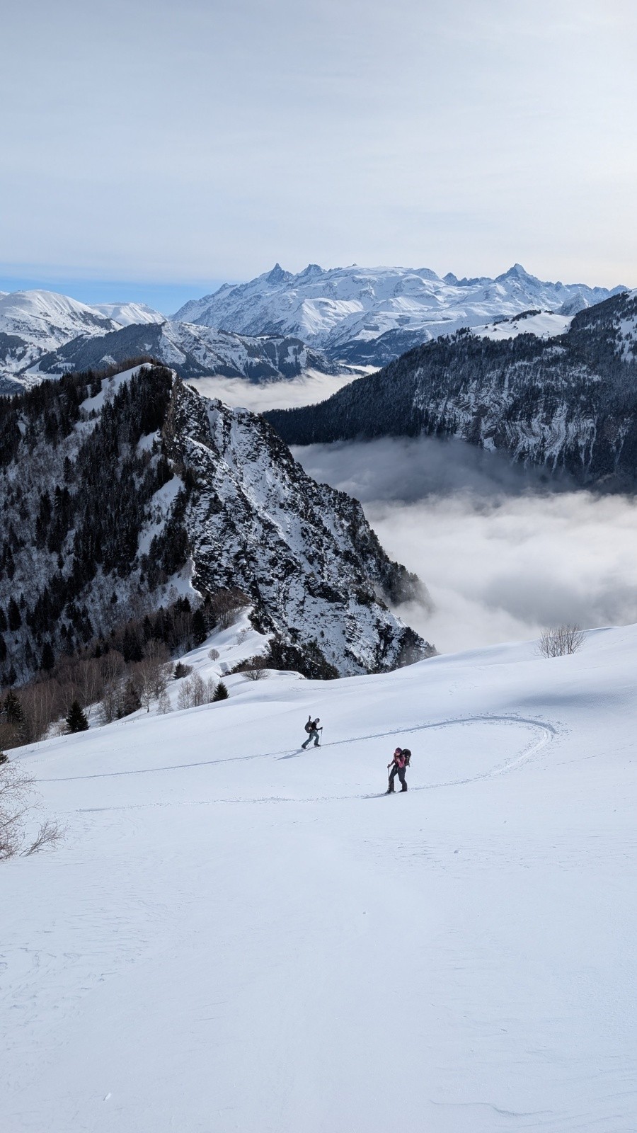 Conditions pour le ski : excellentes sur le haut, croûte bien dégueu sous 1800m.