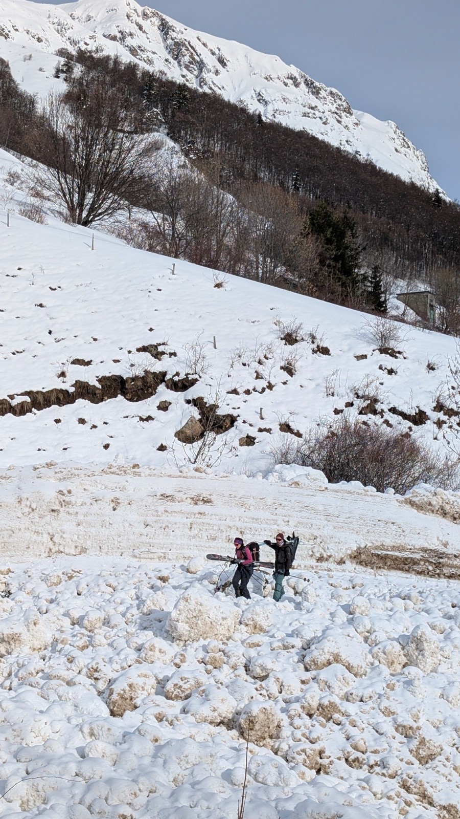 Conditions nivo et activité avalancheuse : grosses avalanches descendues hier dans les deux premiers vallons en partant du village, le 3eme vallon n'est pas encore parti.