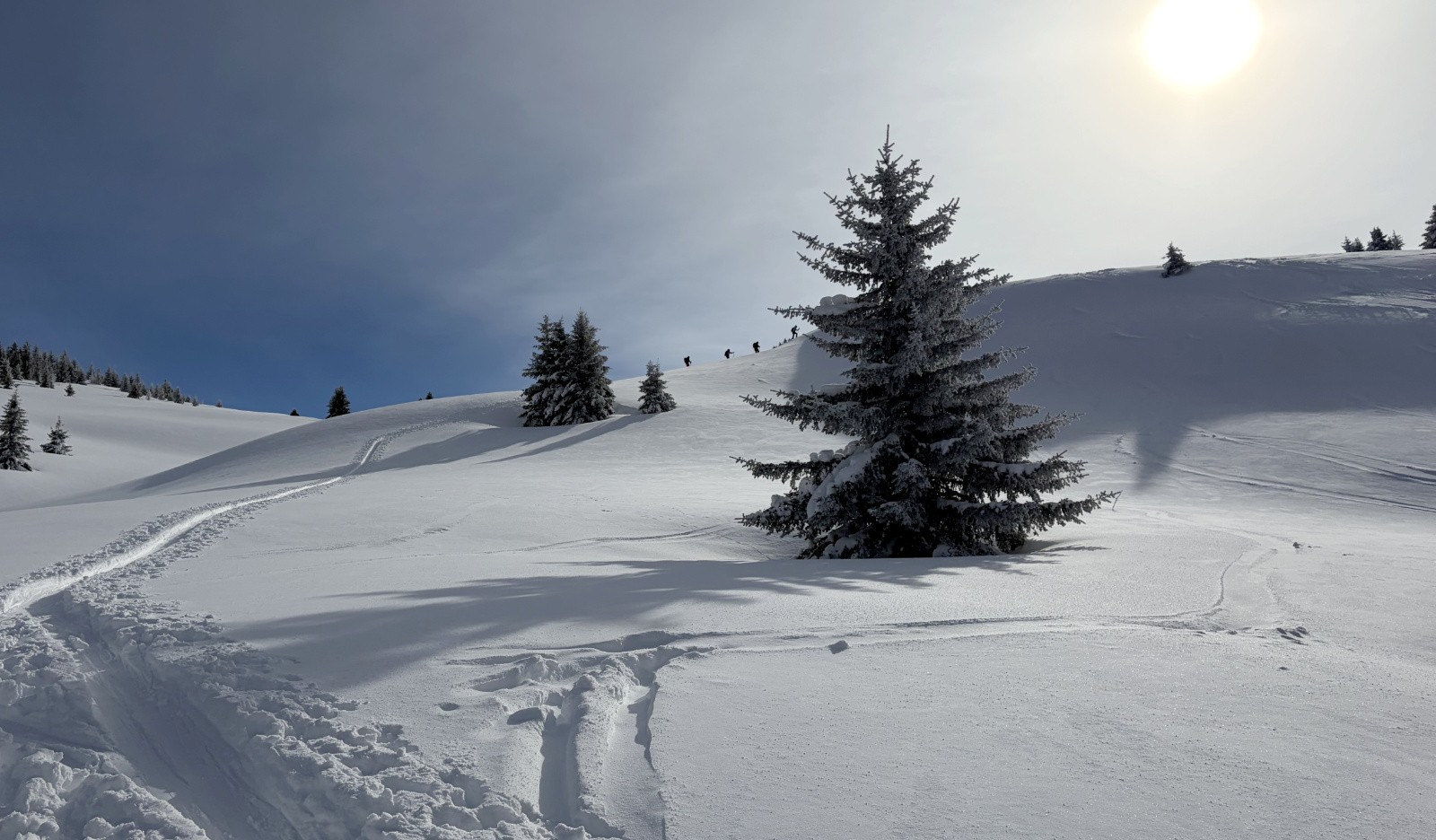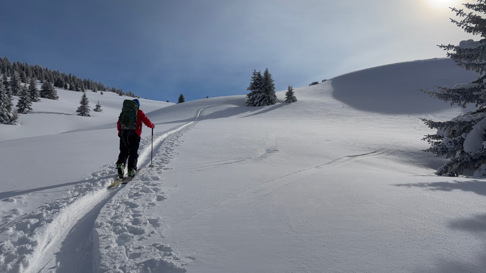 Cet itinéraire permet à la montée de s'affranchir des pistes (physiquement mais pas visuellement !) il passe par contre
