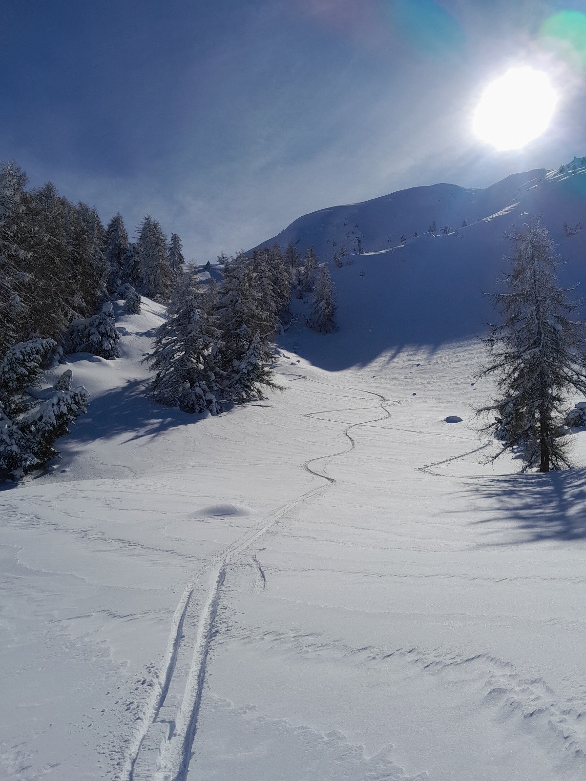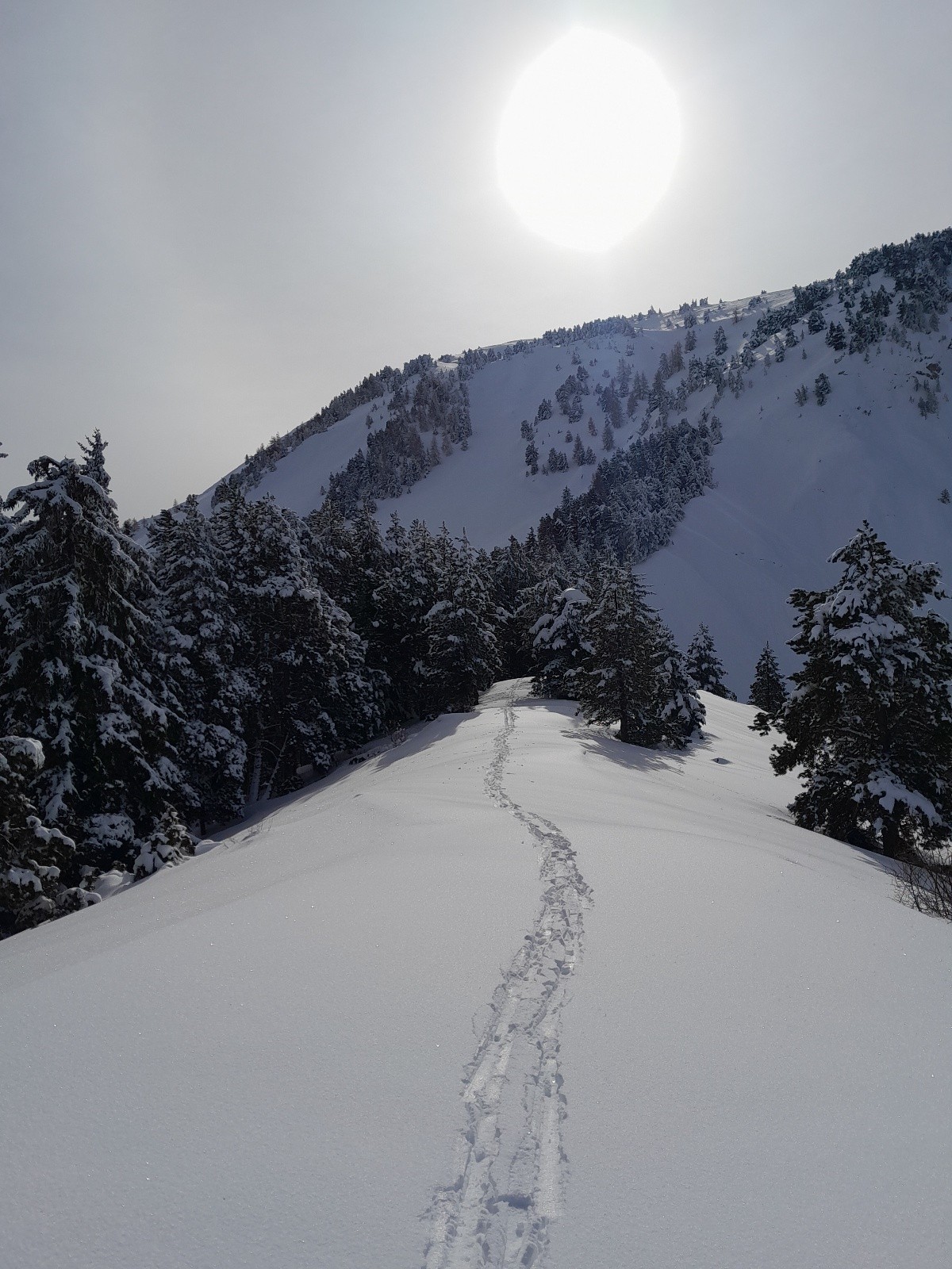 Conditions nivo et activité avalancheuse : RAS. Je ne suis pas montée dans les fortes pentes. Elles paraissaient très soufflées.