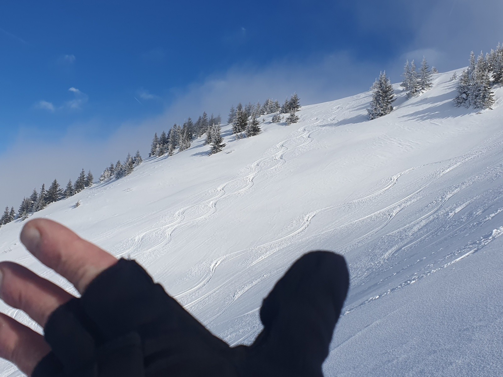 Conditions pour le ski : Bonnes à excellentes avec coins poudreux suivant les expositions