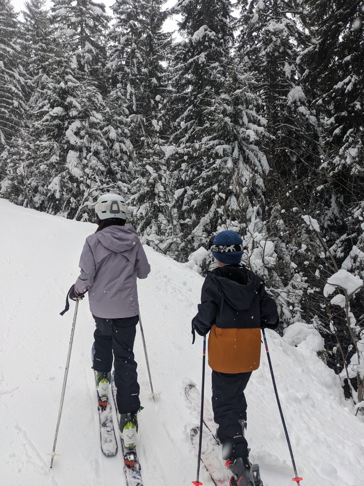 Conditions pour le ski : bonne sur les pistes. La neige tombe, c'est beau !