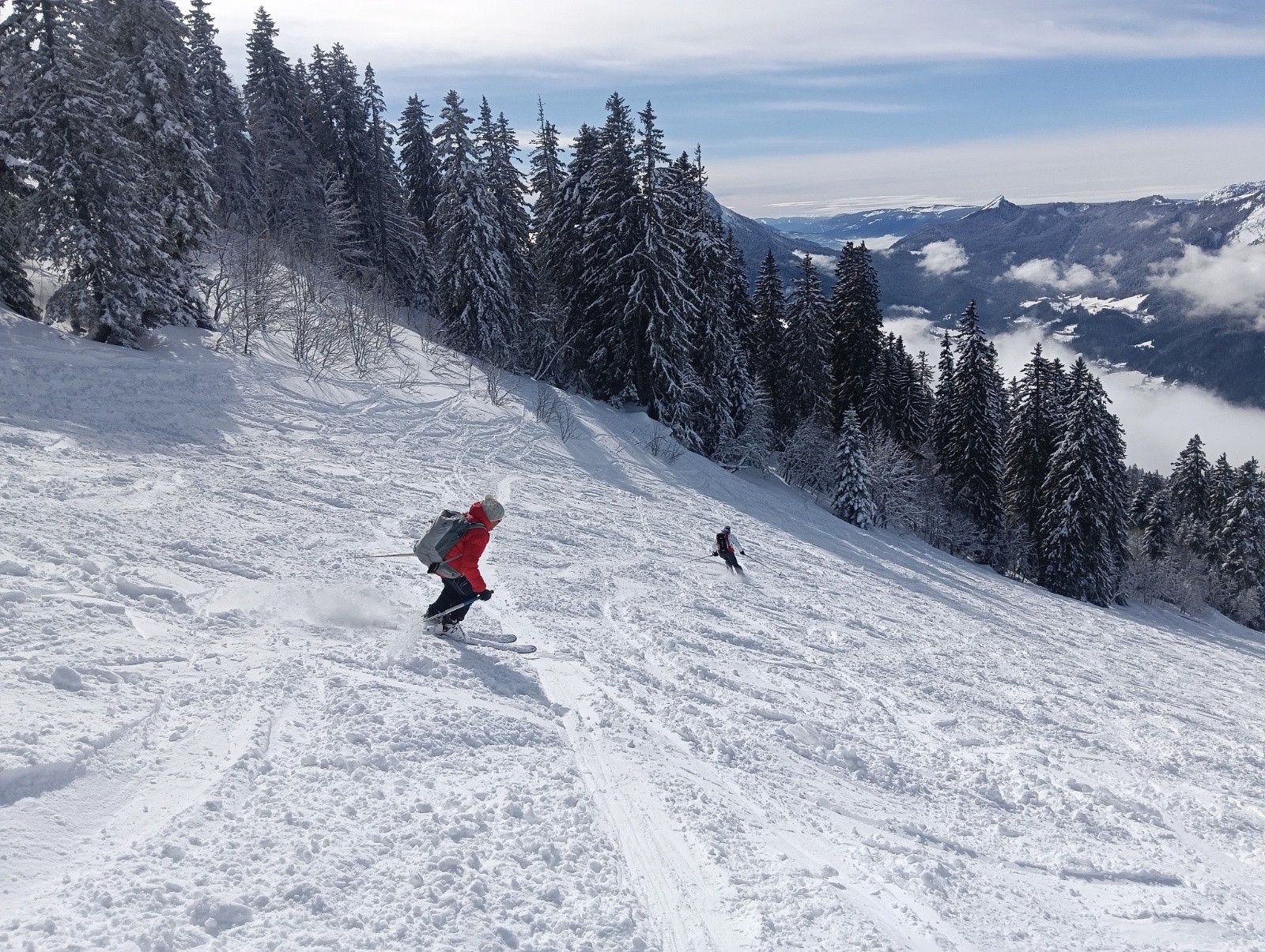 Conditions pour le ski : Petit saupoudrage en bas sur une couche de neige dure, rapidement 10 puis 20 cm de neige fraiche légère mais sans plus