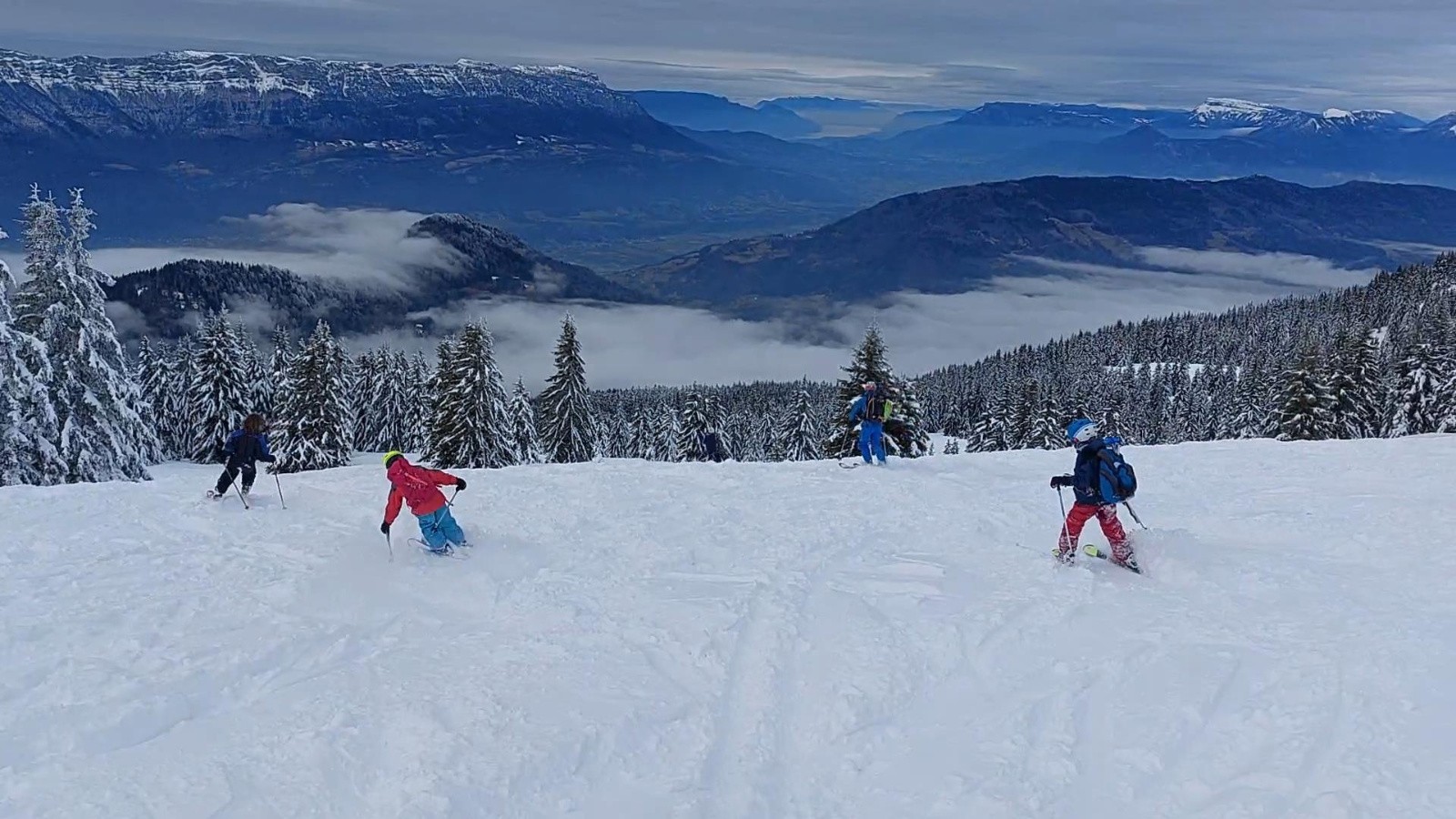 Sortie d'initiation au ski de rando pour les enfants (10 et 8 ans). Pour faire simple, ils sont montés en raquette (louées sur place), et les parents portaient leurs skis/chaussures d'alpin. Ca fait travailler le dos! 🥵🥵😁