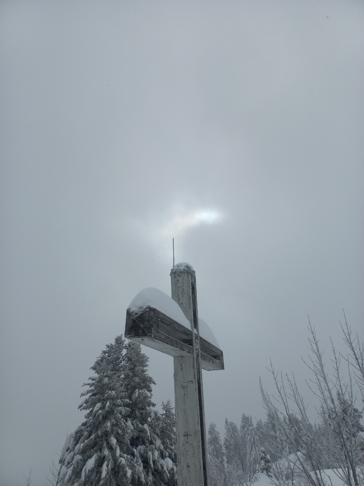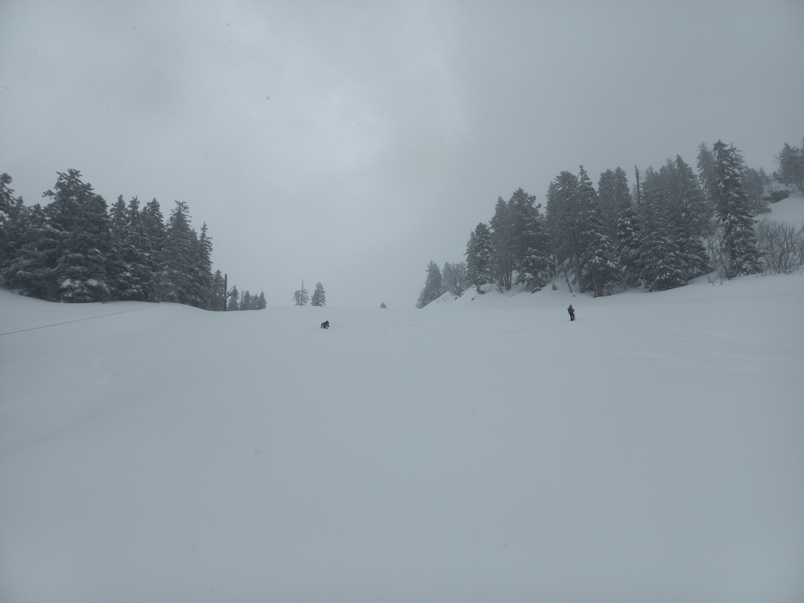 Bonne visibilité dans les nuages malgré la neige humide au départ et flocon à l horizontal avec le vent