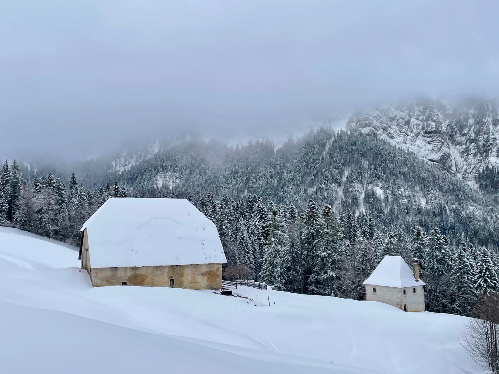Le reste de la sortie consistera à boucler la boucle par des chemins que nous connaissons l'été, aujourd'hui dans une ambiance cotonneuse, parfois plats, rarement skiants, mais très beaux (je ne voudrais pas m'attirer les foudres des aficionadas de la Chartreuse secrète !). Comme on dit, on a bien pris l'air !