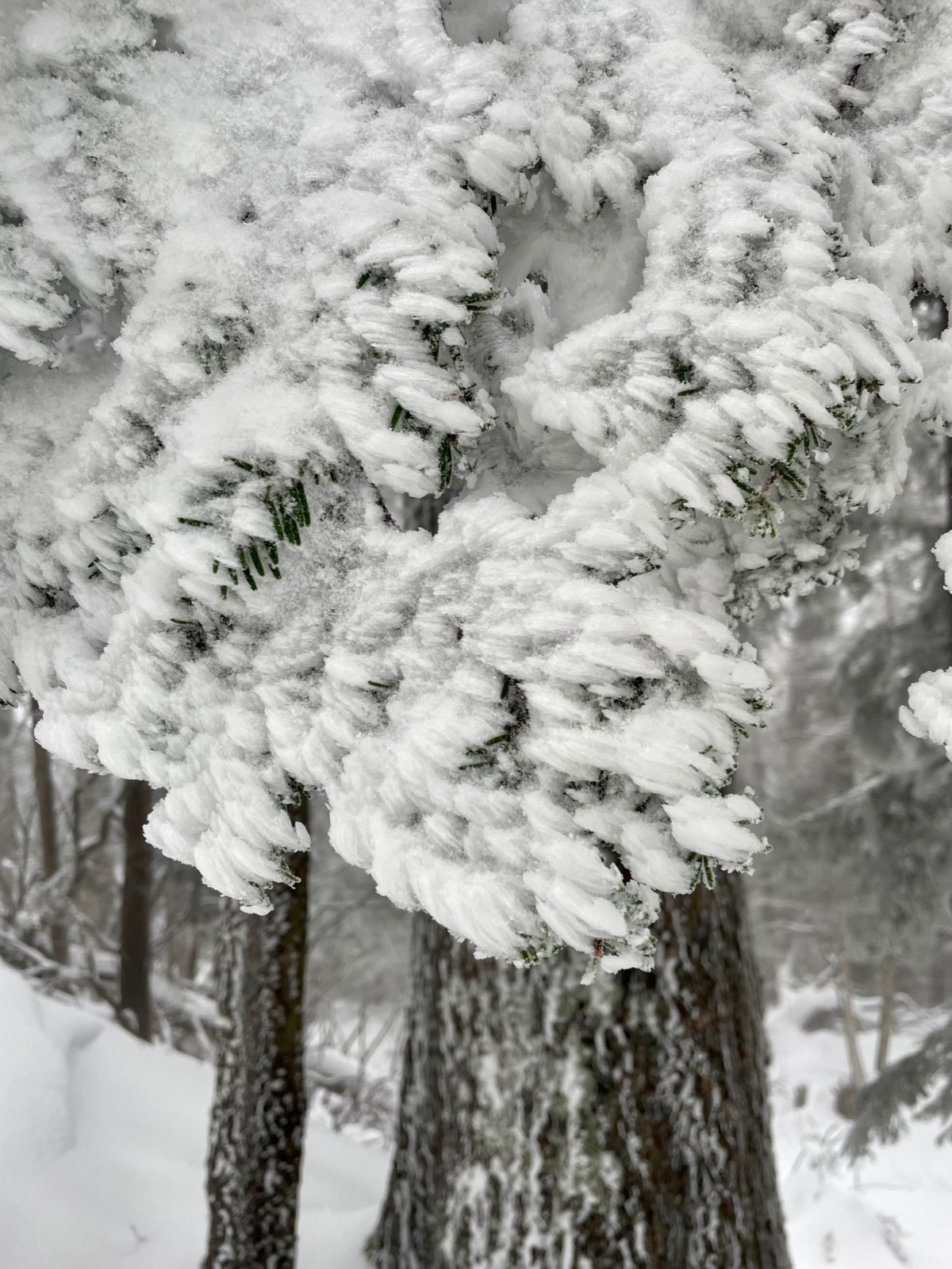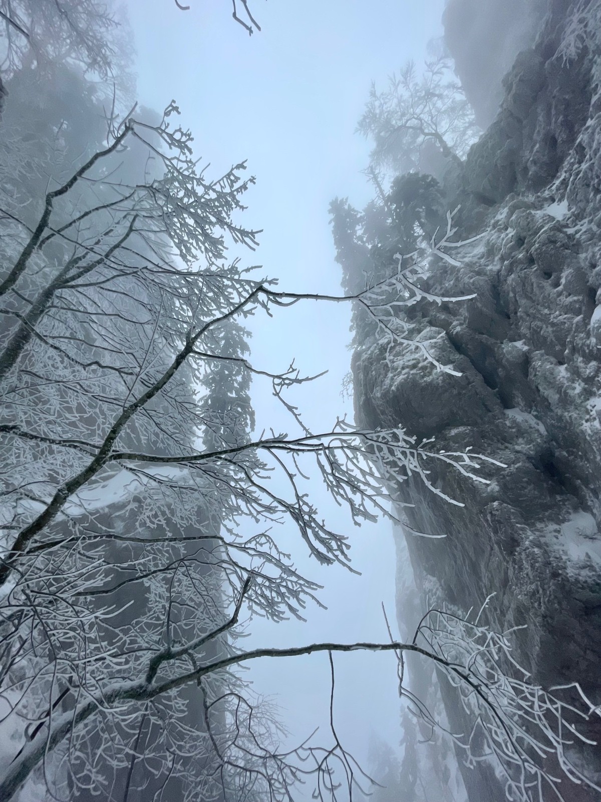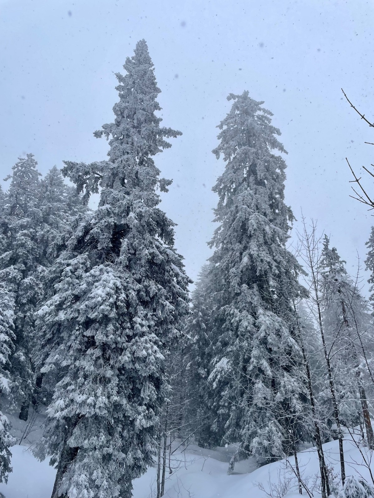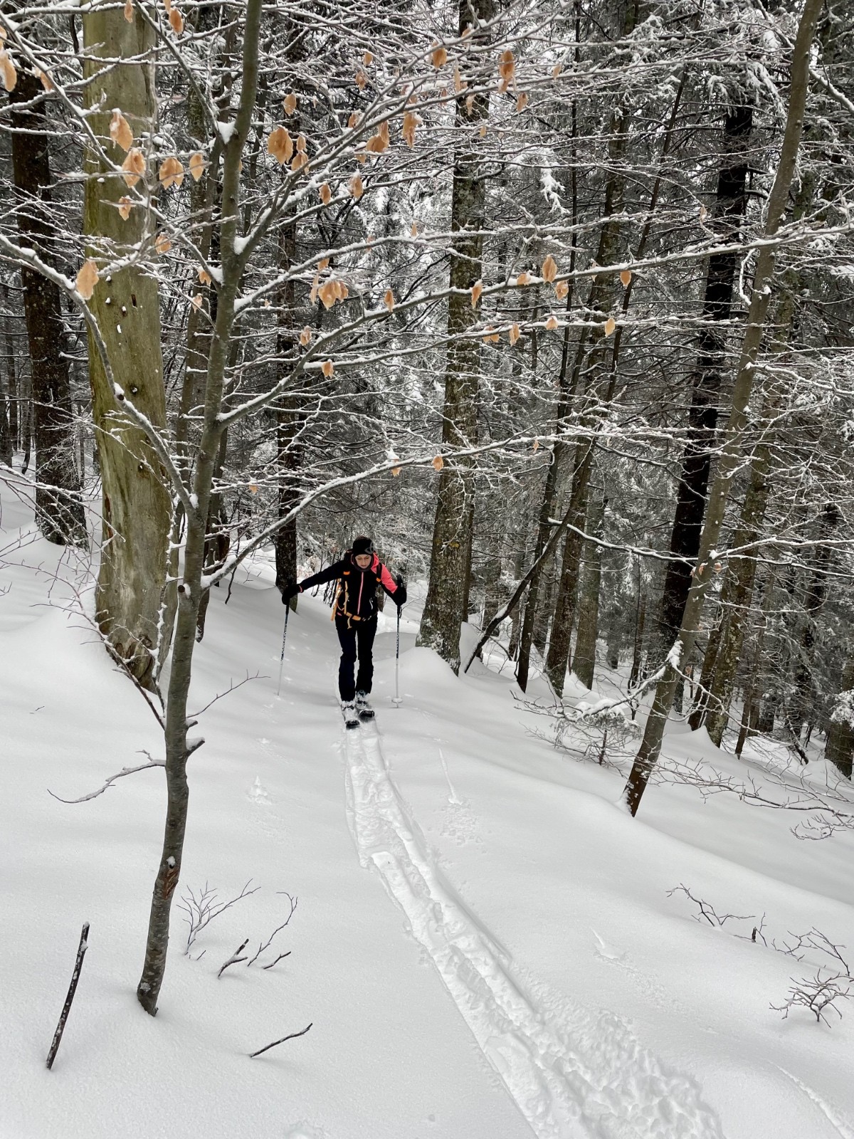 Alors pour ne pas prendre de risques, pour ne pas avoir le mal de mer à force de skier sans visibilité, j'opte pour une boucle en forêt. On pourra, comme la skitourienne qui a inspiré le titre, promener dans les zones de silence et s'émerveiller devant des couleurs qui n'en sont presque pas.