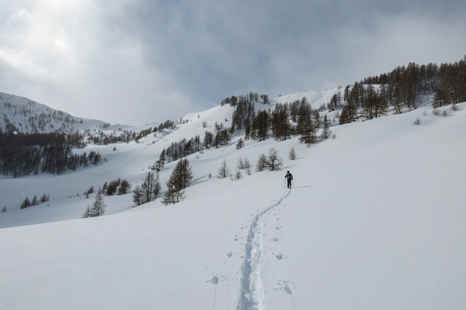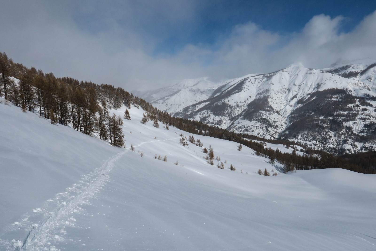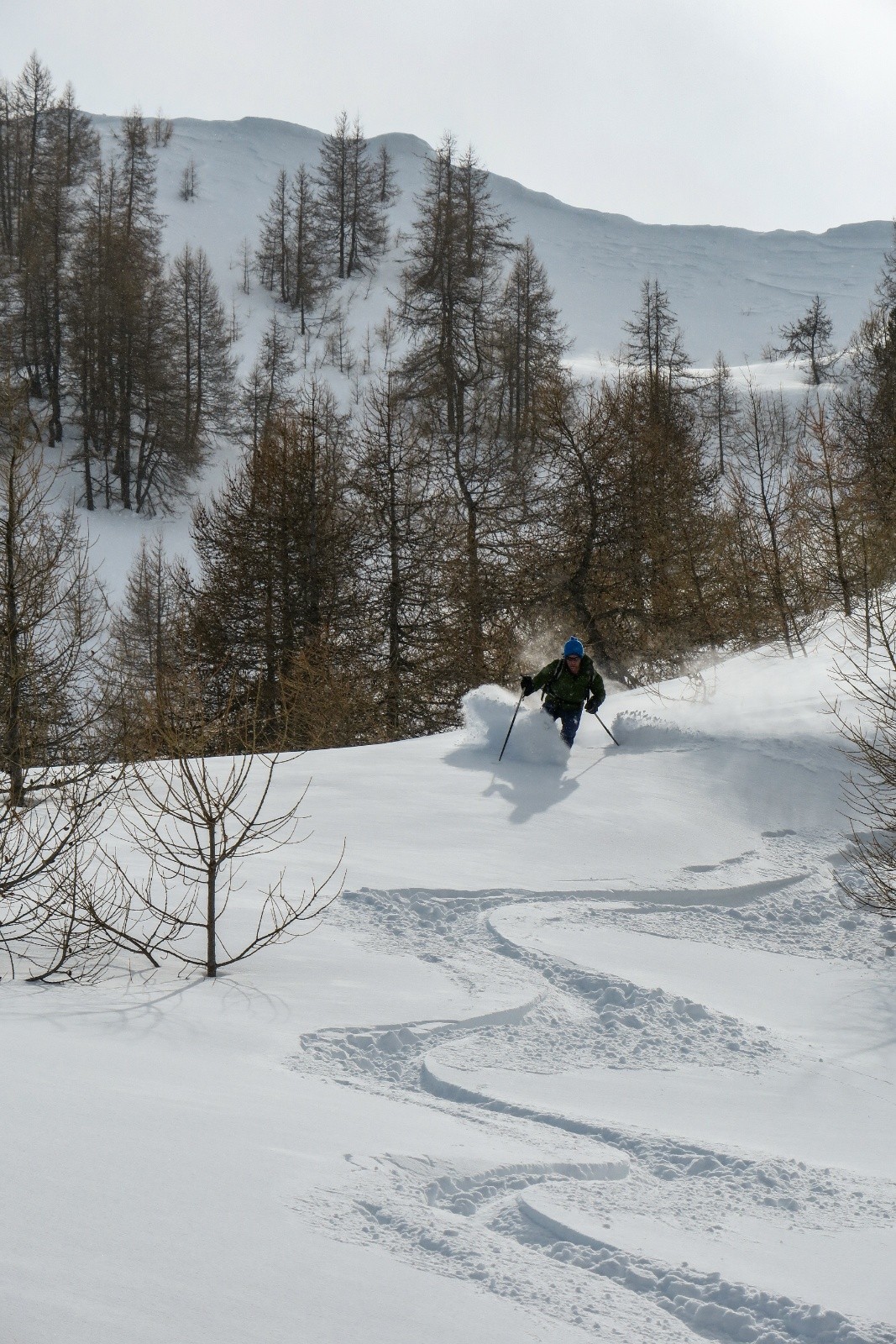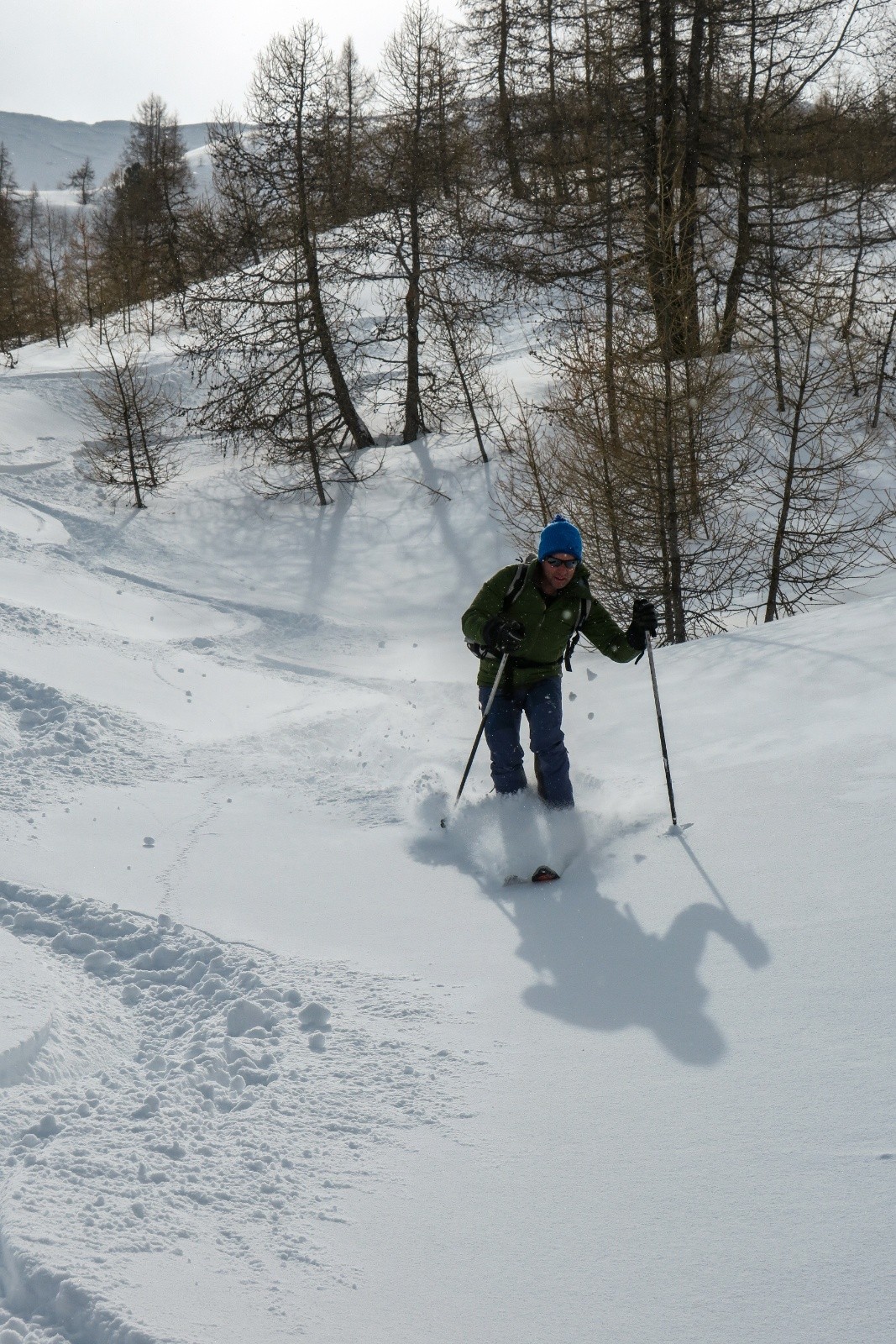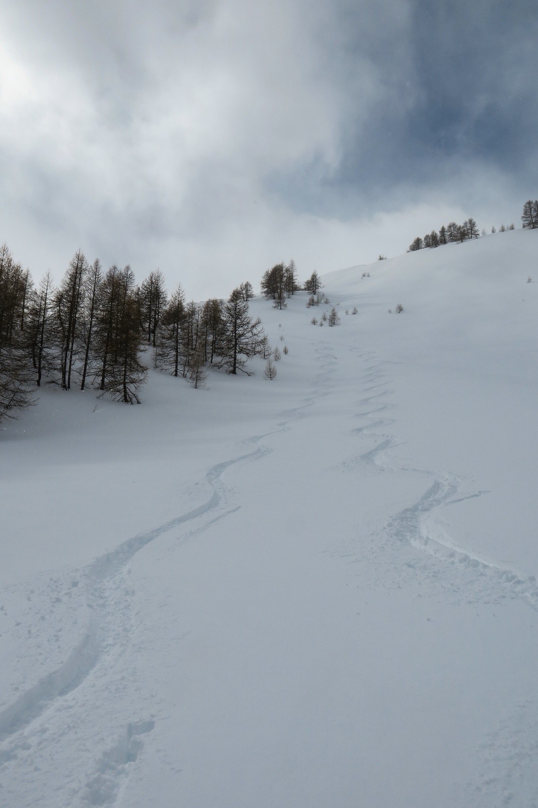 Conditions nivo et activité avalancheuse : Hormis quelques petites purges naturelles, peu d'activité observée. En revanche dans les zones sous le vent (versants est principalement) les 30 cm n'adhérent pas du tout au fond plus ferme su dessous. Ça se morcelait même dans les conversions peu raides. Il ne fallait pas chercher du raide aujourd'hui.