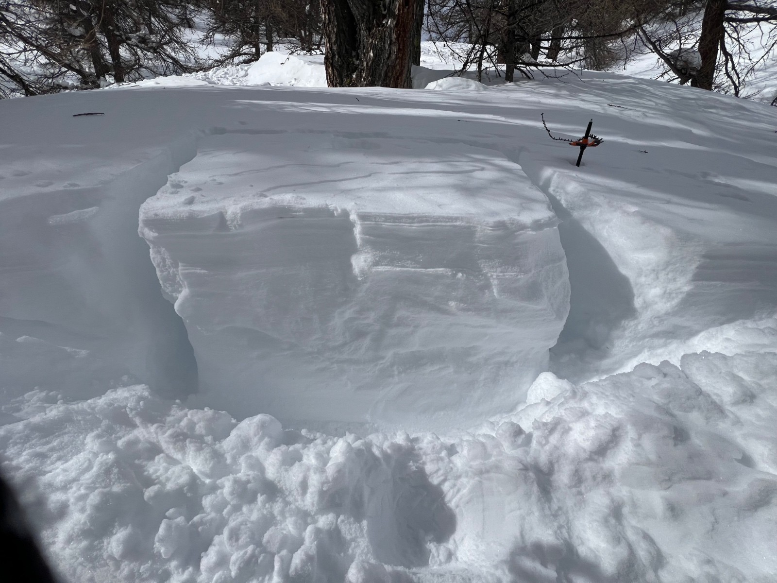 De près (forêt / 2200) : CP vite fait, les 10 1ers cm partent en petite plaque facilement, les 60 en dessous partent difficilement (10). Pas allé voir plus profond, y’a trop de neige !