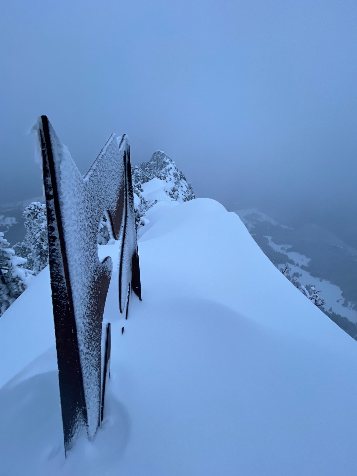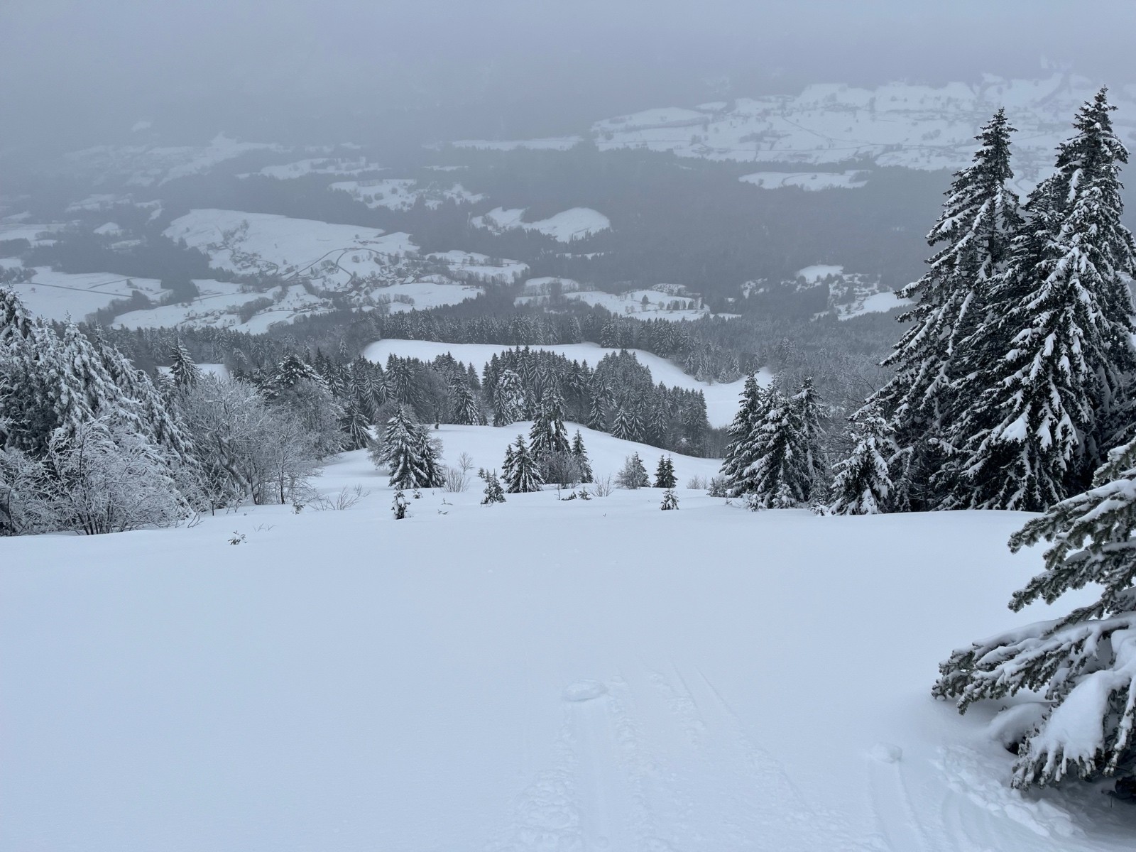 Conditions nivo et activité avalancheuse : dans les conversions et zones les plus raides, parfois de petites cassures de 10/20cm de fond sans incidence ici mais attention à garder en tête pour les sorties du coin avec plus de pente.