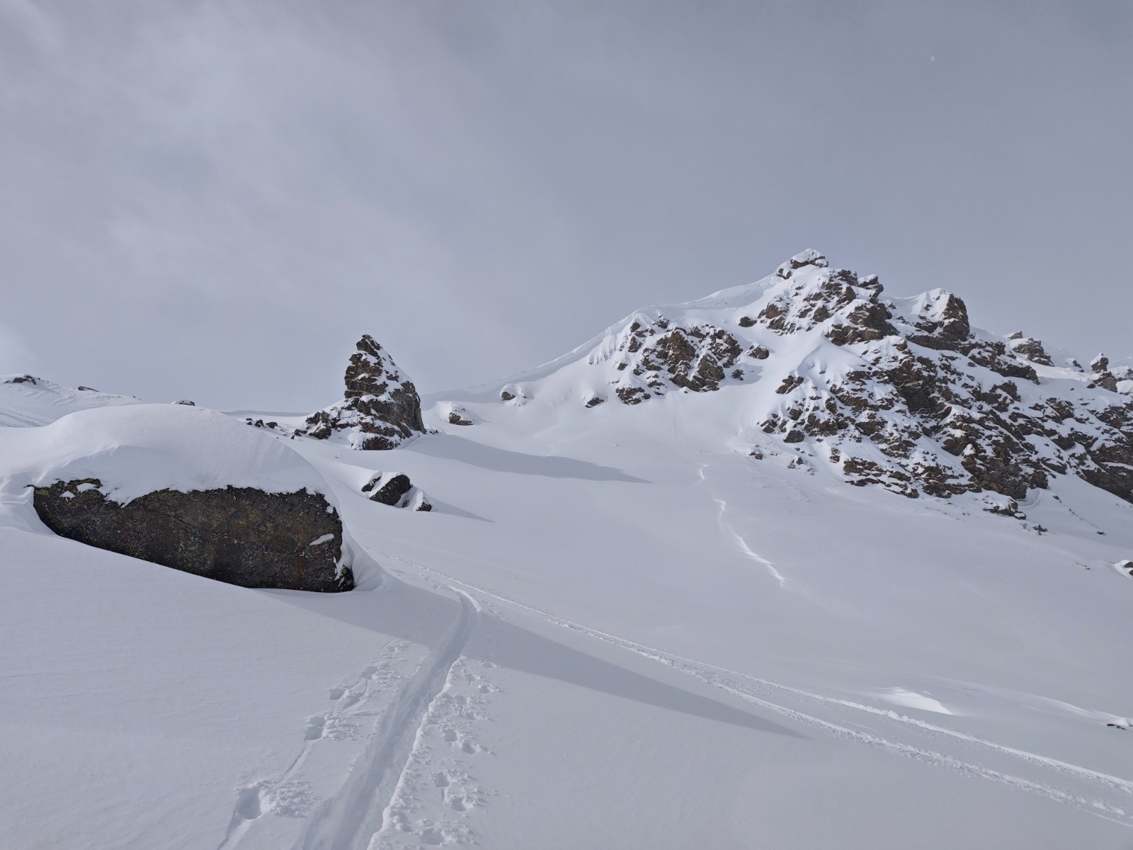 Conditions pour le ski : Trop de neige pour les faibles pentes mais c'était tout poudre à peine venté sur le haut. Le vallon est globalement assez protégé par vent d'ouest comme c'était le cas, moins quand c'est NW ou N.
