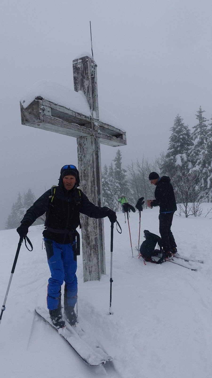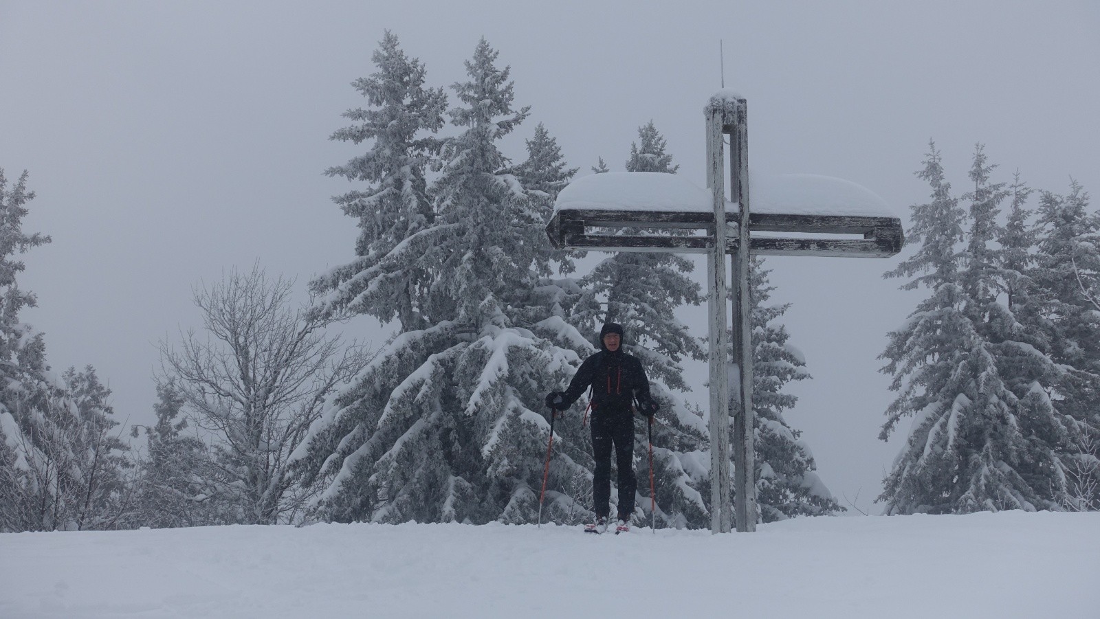 Arrivée à la croix, il neige un peu, visibilité mediocre