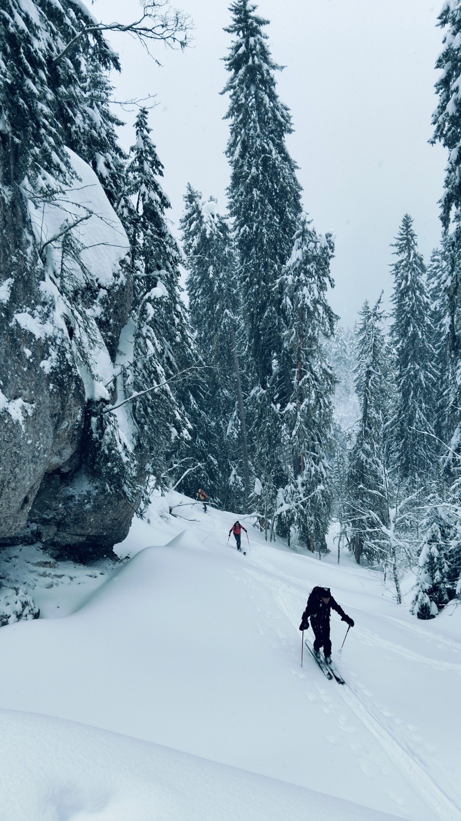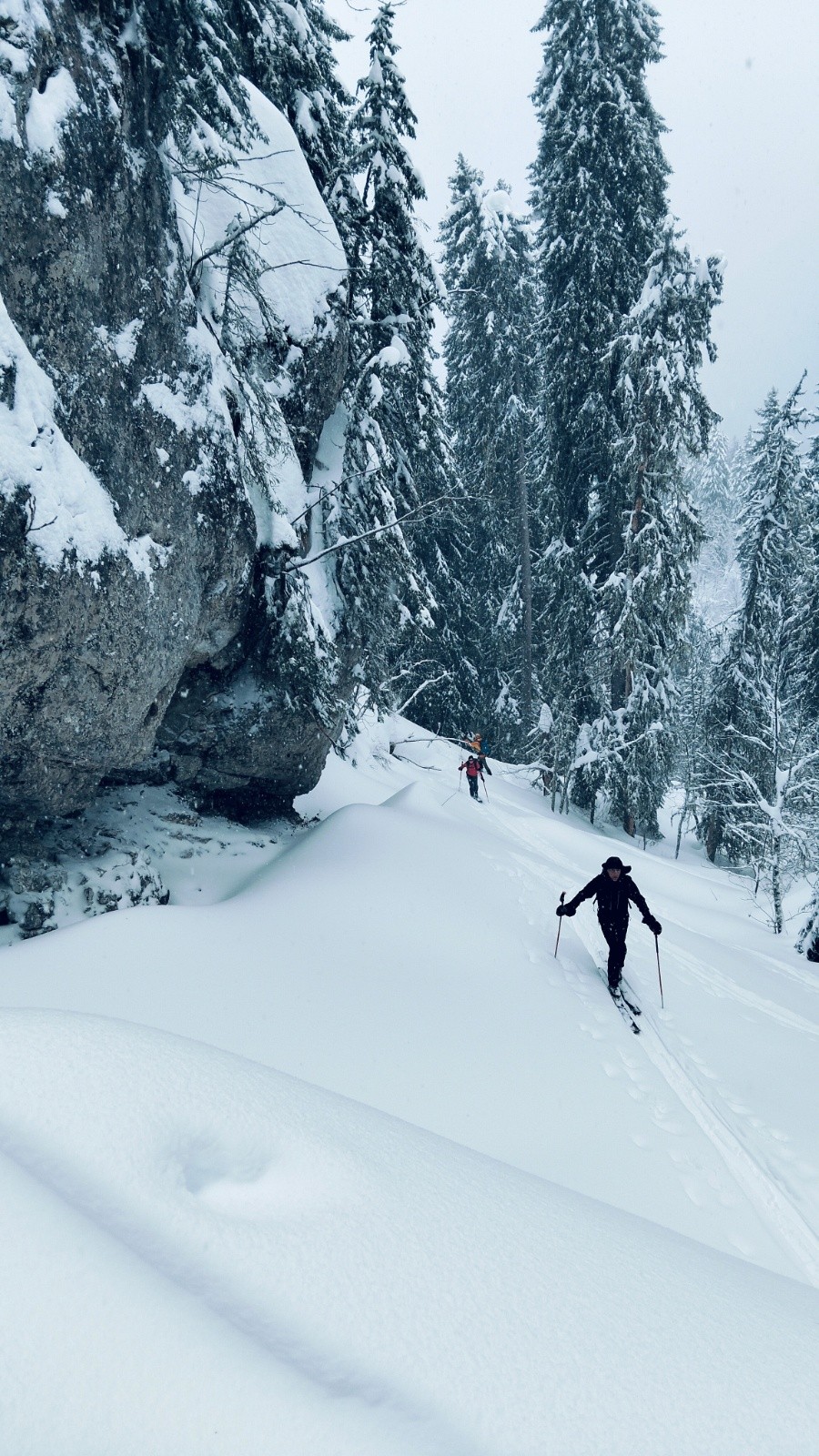 Il faut dire qu'ils nous semblait être plutôt seul lors de cette montée, mais en remémorant la crête du sommet, les skieurs semblaient surgir de nul part , apparaissant comme par miracle entre deux sapins, 1 par ci, 2 par là, 4 par Scia..