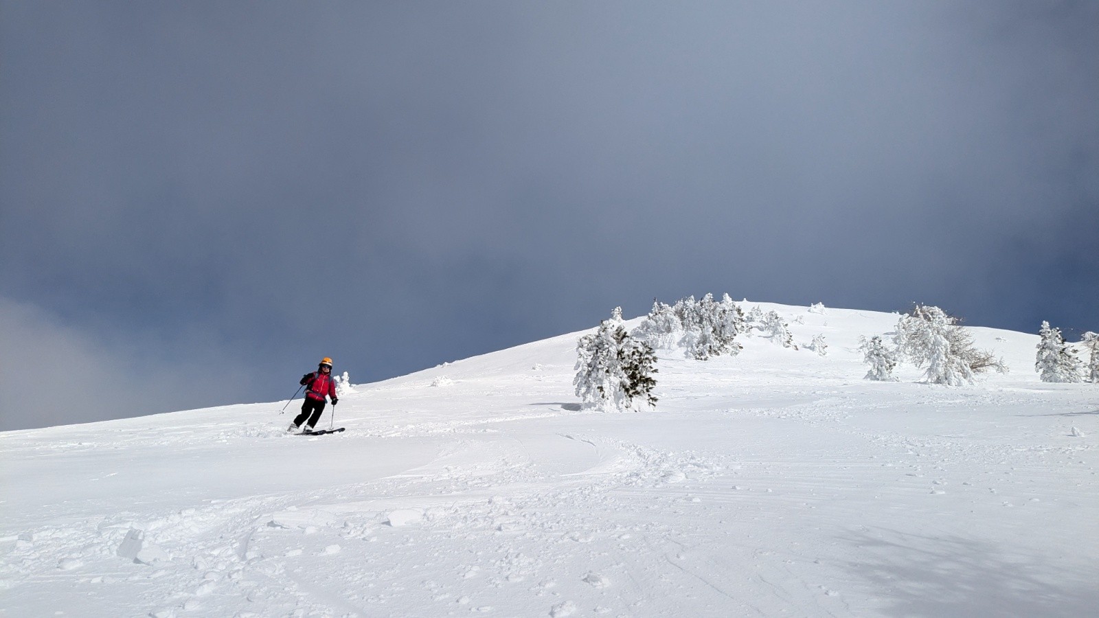 Conditions pour le ski : juste ce qu'il faut en bas puis ça augmente très vite. Poudre partout, neige soufflée seulement au sommet de Savernes. Ça a bien chauffé aujourd'hui, tout ce qui a pris le soleil sera croutée demain, enfin on m'annonce à l'oreillette qu'il y a une nouvelle livraison de matériel demain😁