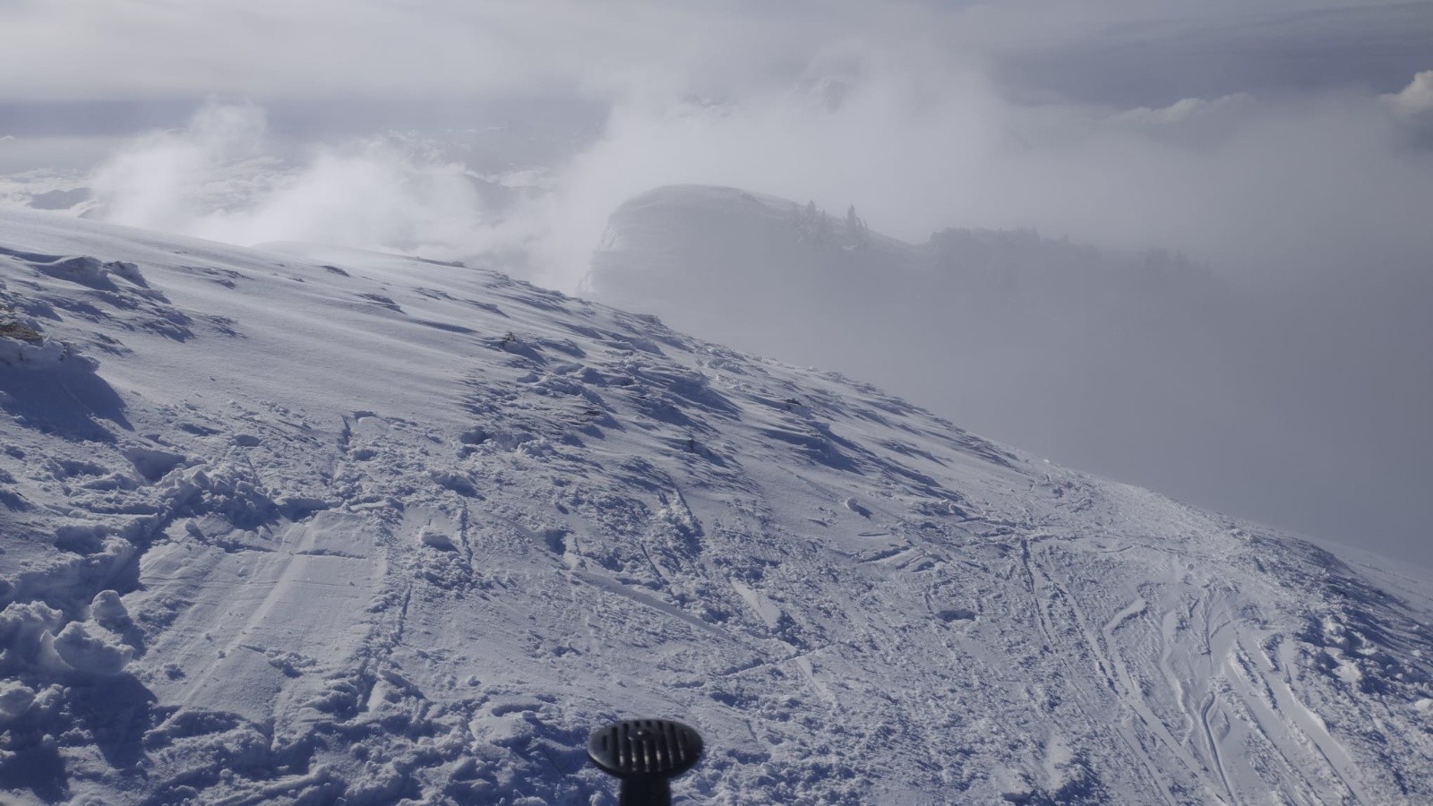 Conditions pour le ski : neige douce un peu humide et collante sur le bas.